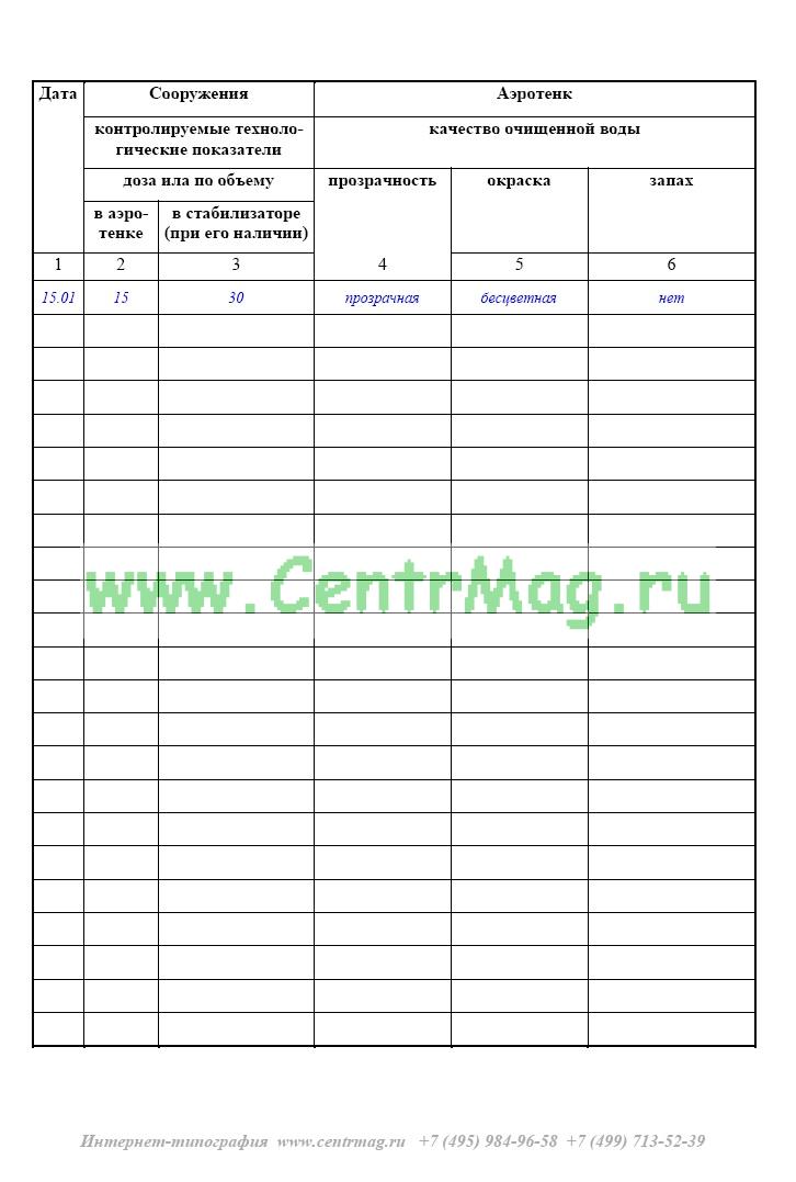 Вахтенный журнал очистных сооружений содержит графы (столбцы):