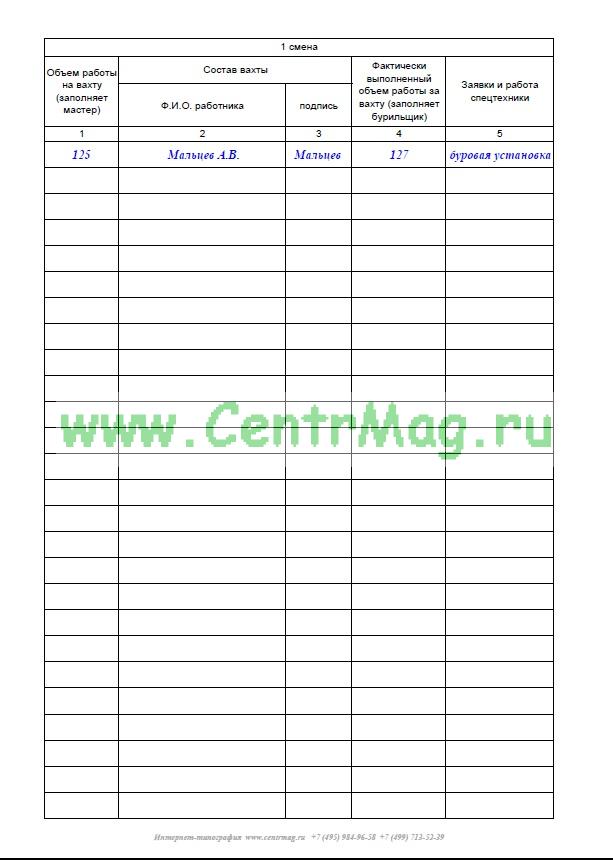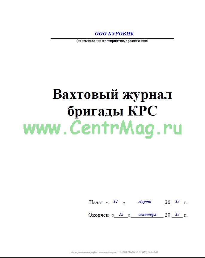 Вахтовый журнал бригады КРС имеет графы: