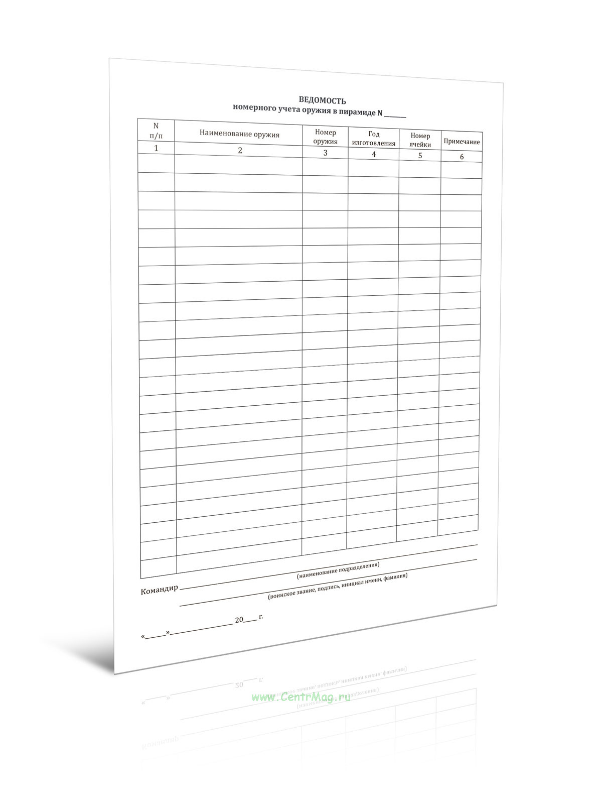 Ведомость номерного учета оружия в пирамиде продается только как чистый незаполненный бланк, без печатей и подписей соответствует 149-ФЗ от 27.07.2006