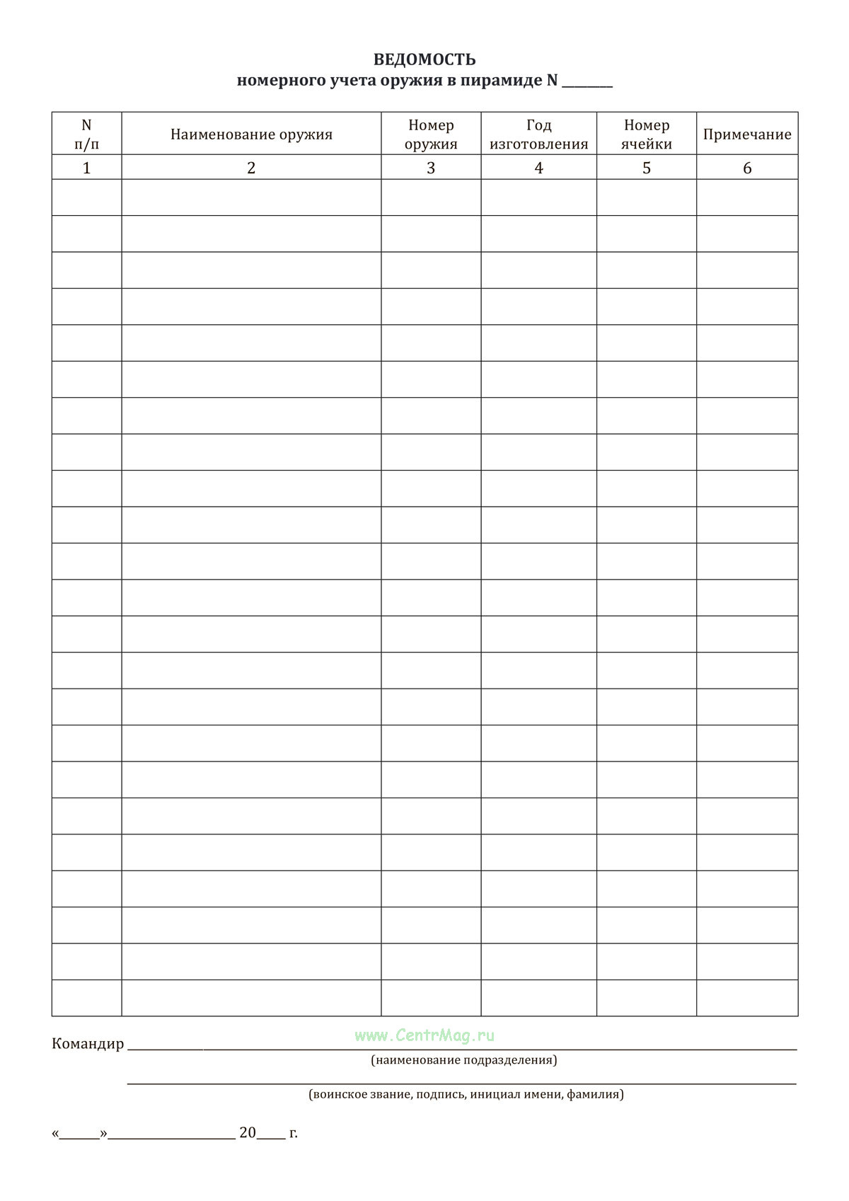 Ведомость номерного учета оружия в пирамиде имеет графы: