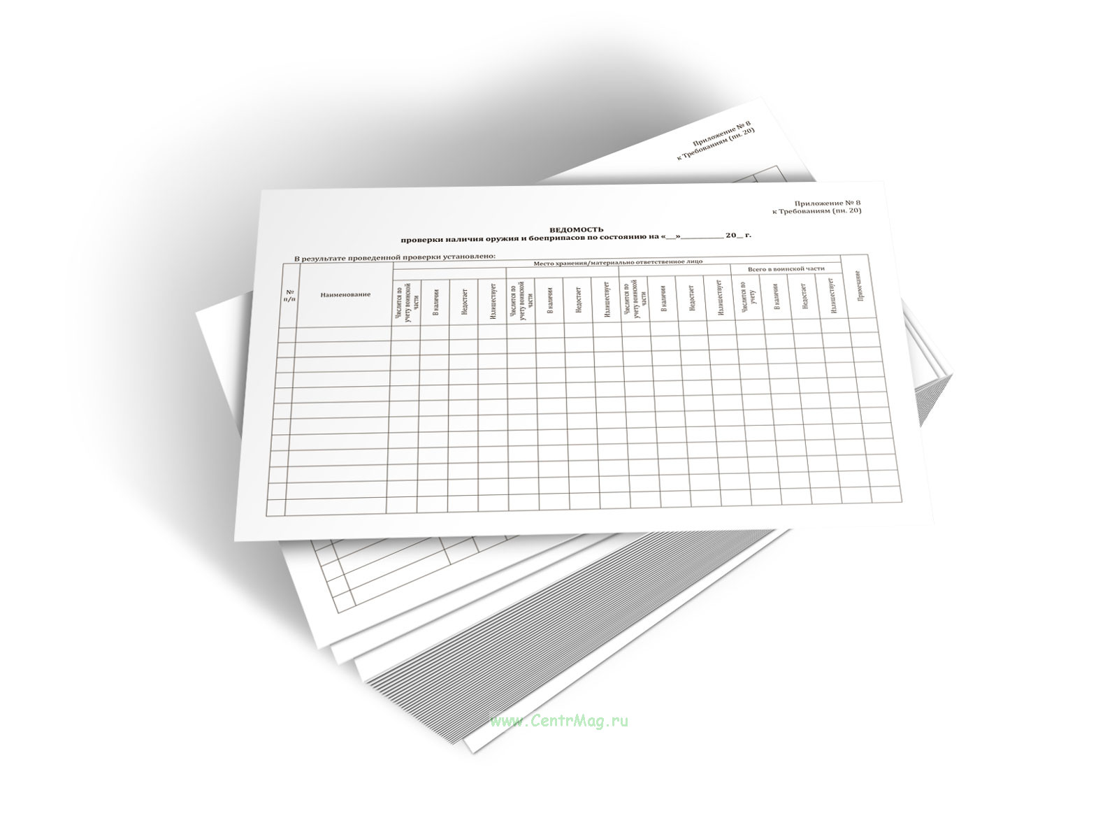 Ведомость проверки наличия оружия и боеприпасов продается только как чистый незаполненный бланк, без печатей и подписей соответствует 149-ФЗ от 27.07.2006