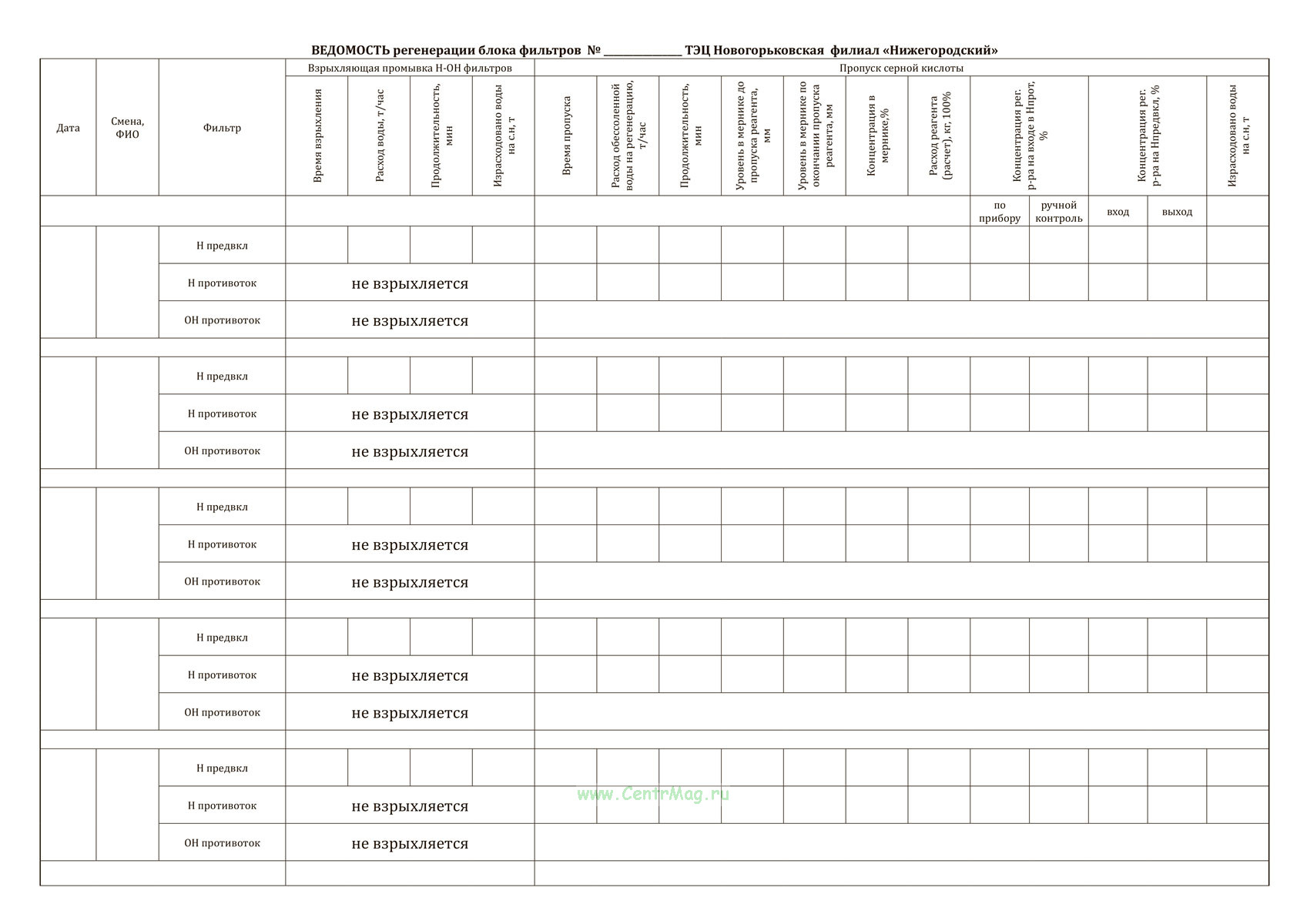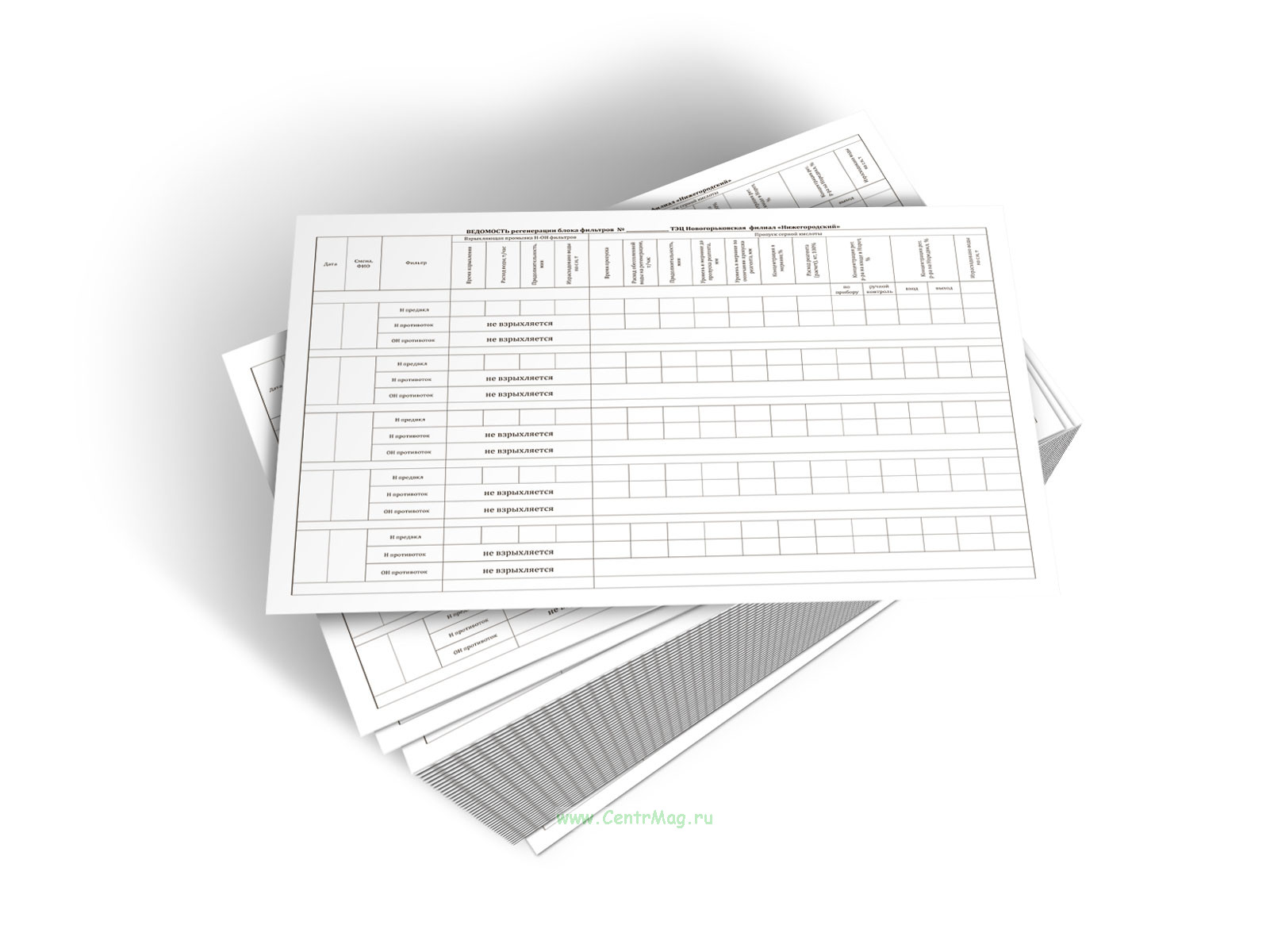 Ведомость регенерации блока фильтров продается только как чистый незаполненный бланк, без печатей и подписей соответствует 149-ФЗ от 27.07.2006