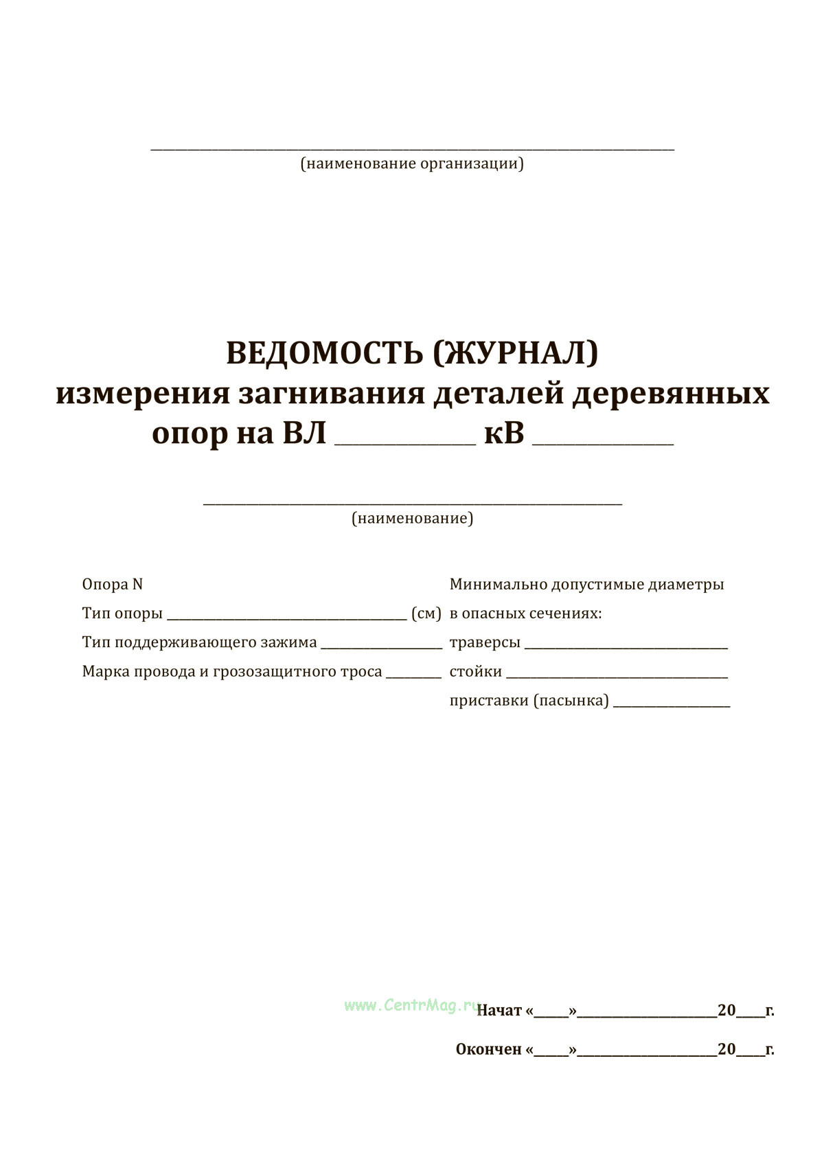 Форма Журнала измерения загнивания деталей деревянных опор на воздушных линиях электропередачи соответствует Приложению N 5 к РД 34.20.504-94 "Типовая инструкция по эксплуатации воздушных линий электропередачи напряжением 35-800 кВ".