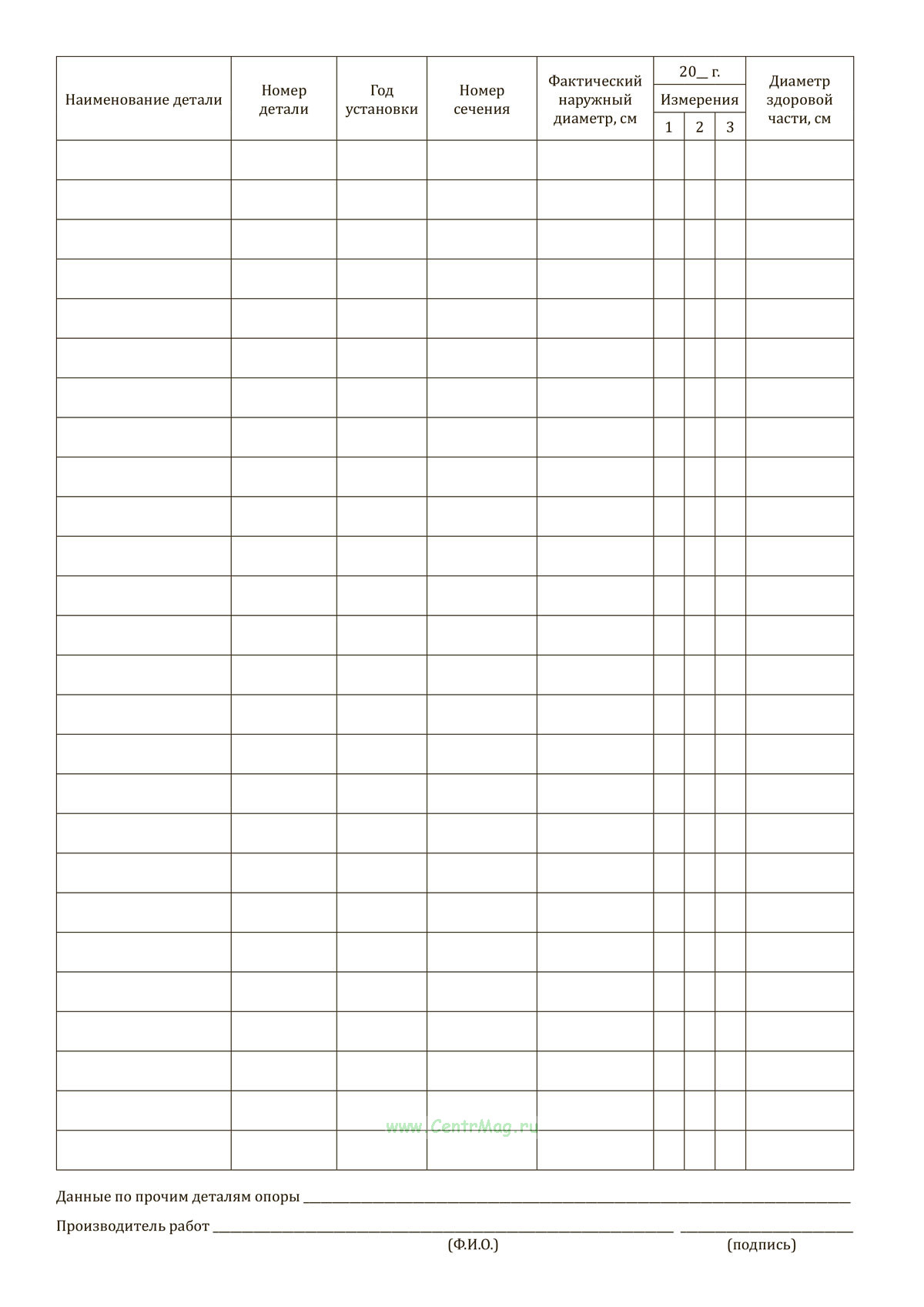 Ведомость (журнал) измерения загнивания деталей деревянных опор на воздушных линиях имеет графы: