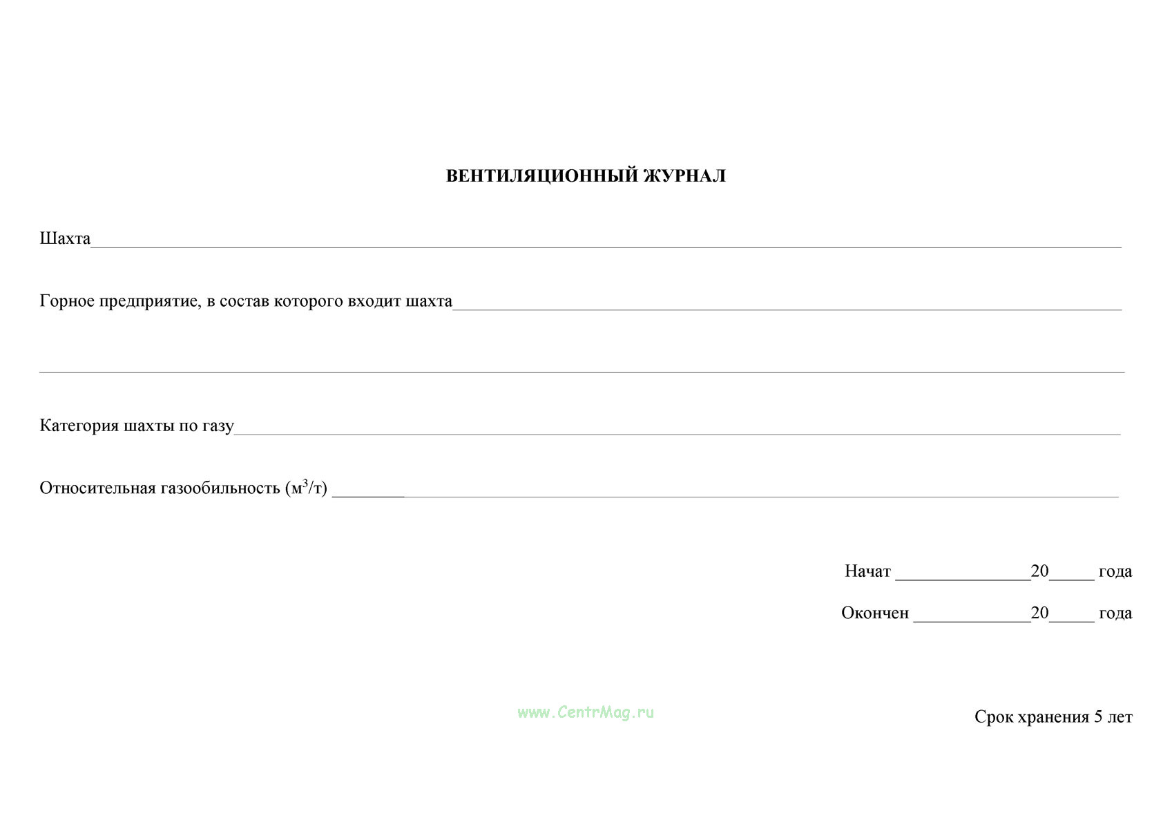 Вентиляционный журнал применяется для систематической регистрации параметров работы вентиляционного оборудования в шахтах, контроля качества проветривания выработок, а также для обеспечения безопасности работ в горных условиях. Он фиксирует данные о подаче и давлении воздуха, составе газов, характеристиках вентиляционного оборудования, параметрах проветривания после взрывных работ и служит официальным документом для анализа, планирования и отчетности перед надзорными органами.