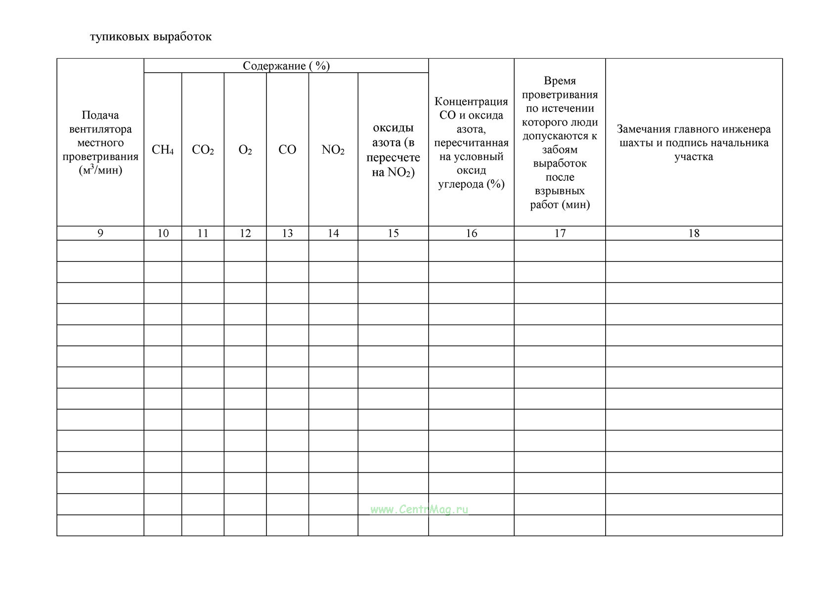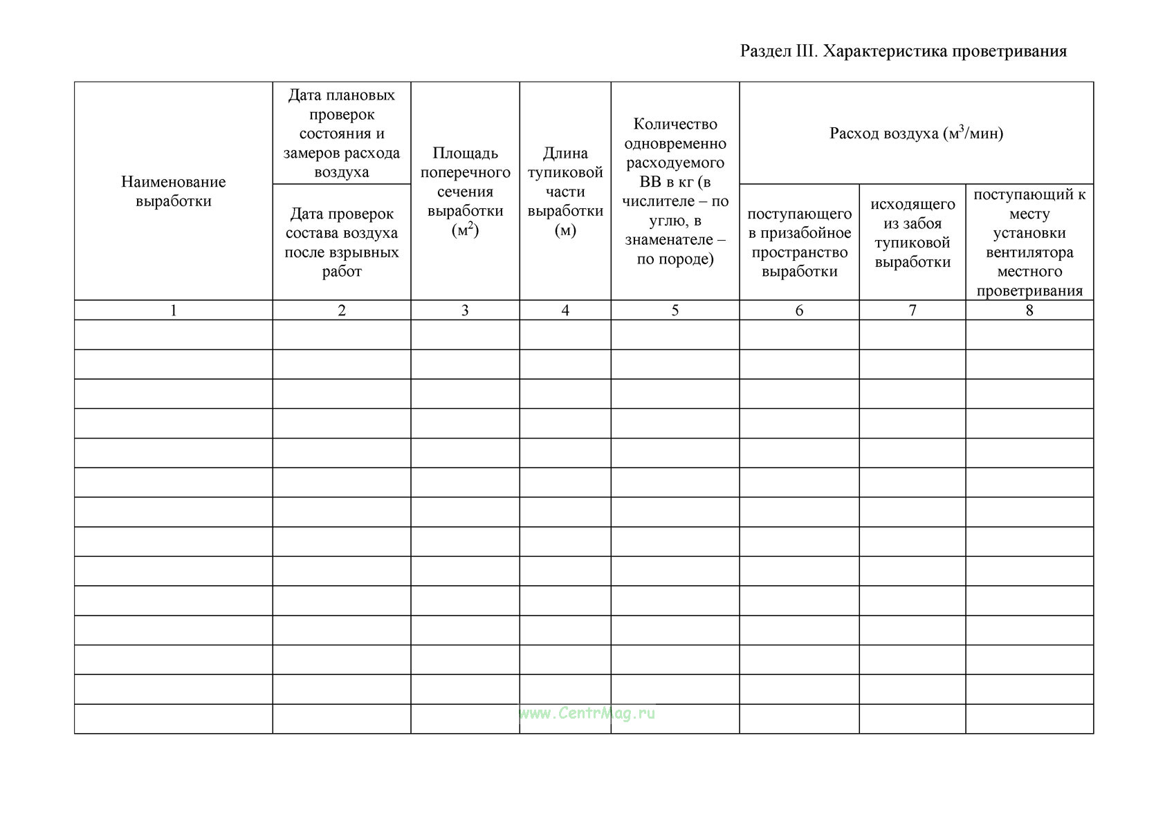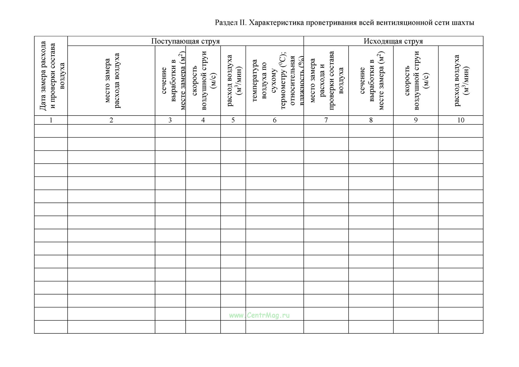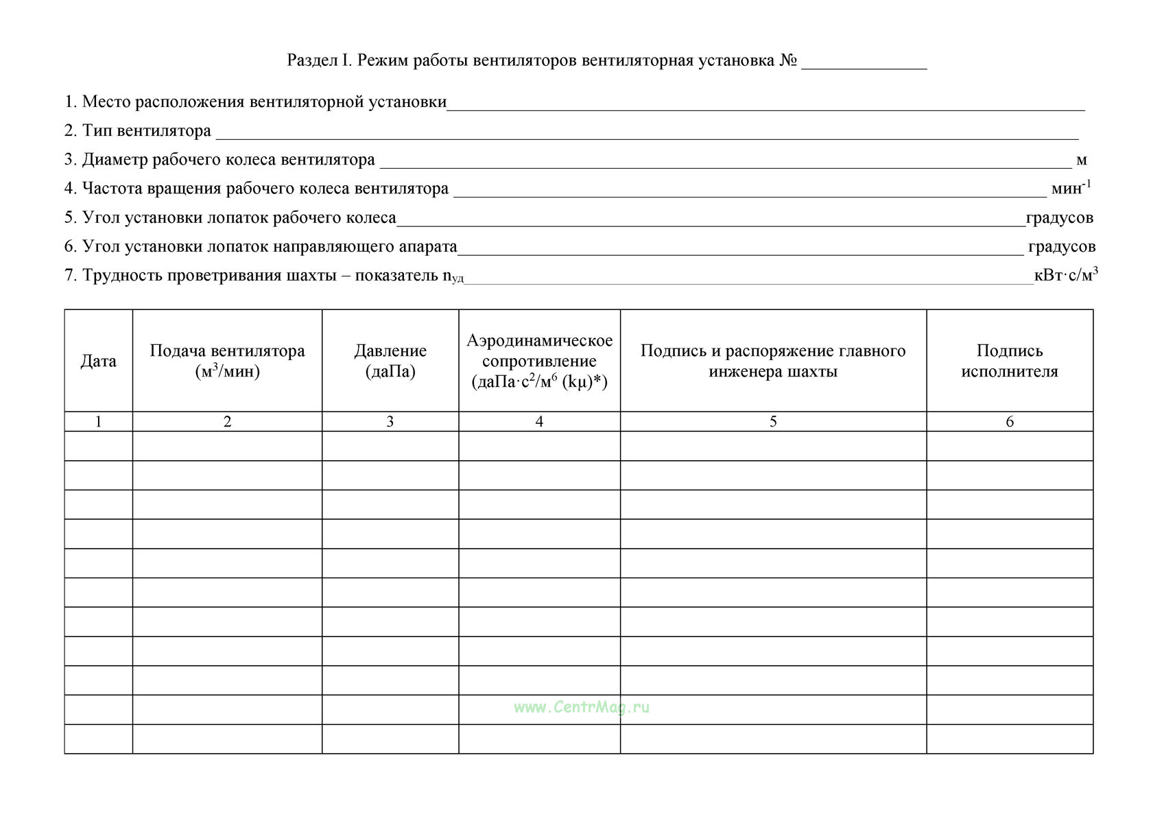 Вентиляционный журнал имеет графы:
