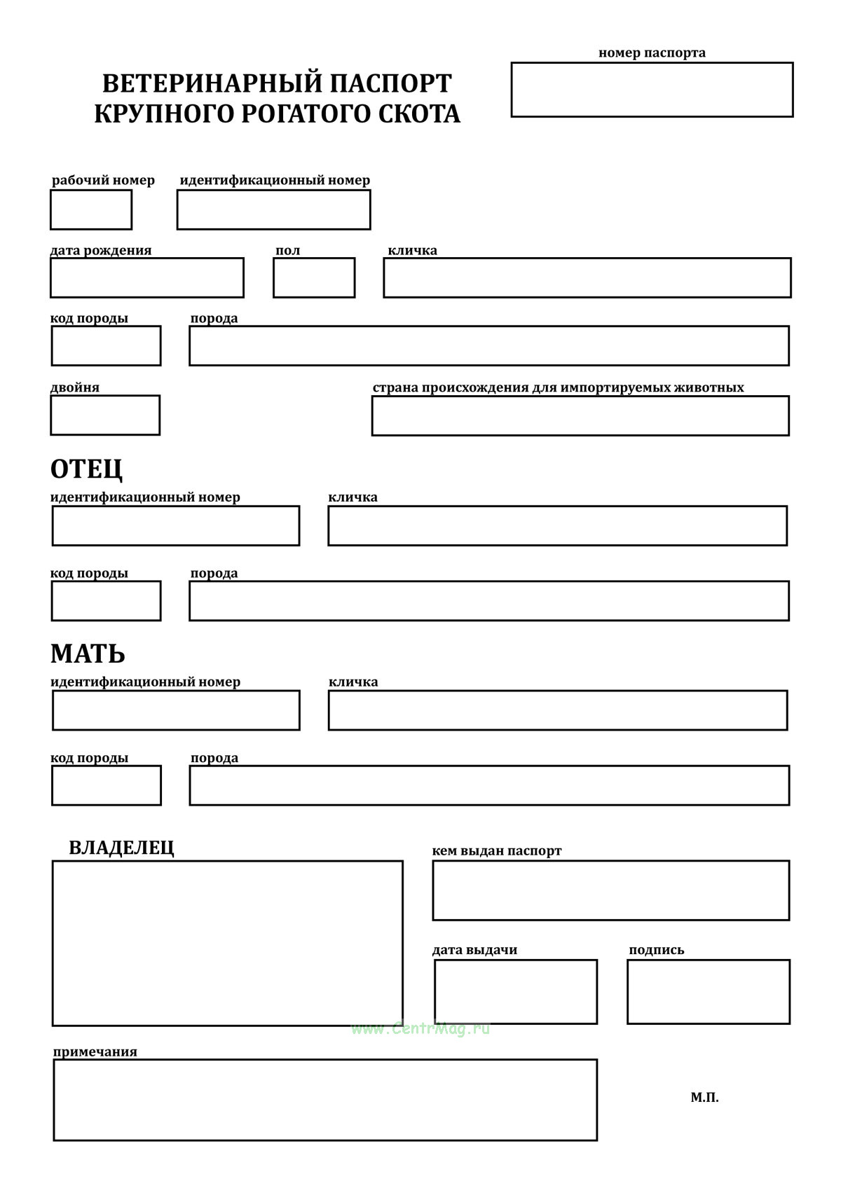 Ветеринарный паспорт крупного рогатого скота имеет графы: