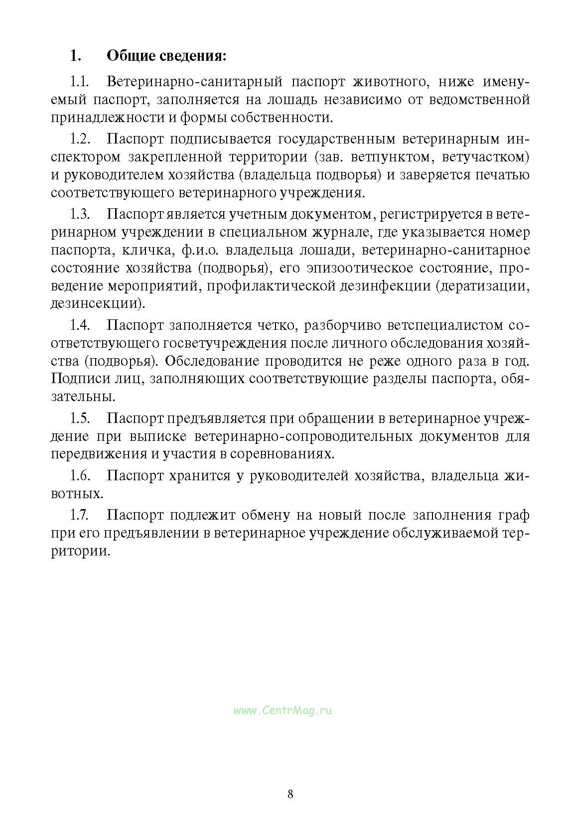 Ветеринарно-санитарный паспорт животного, ниже именуемый паспорт, заполняется на лошадь независимо от ведомственной принадлежности и формы собственности.