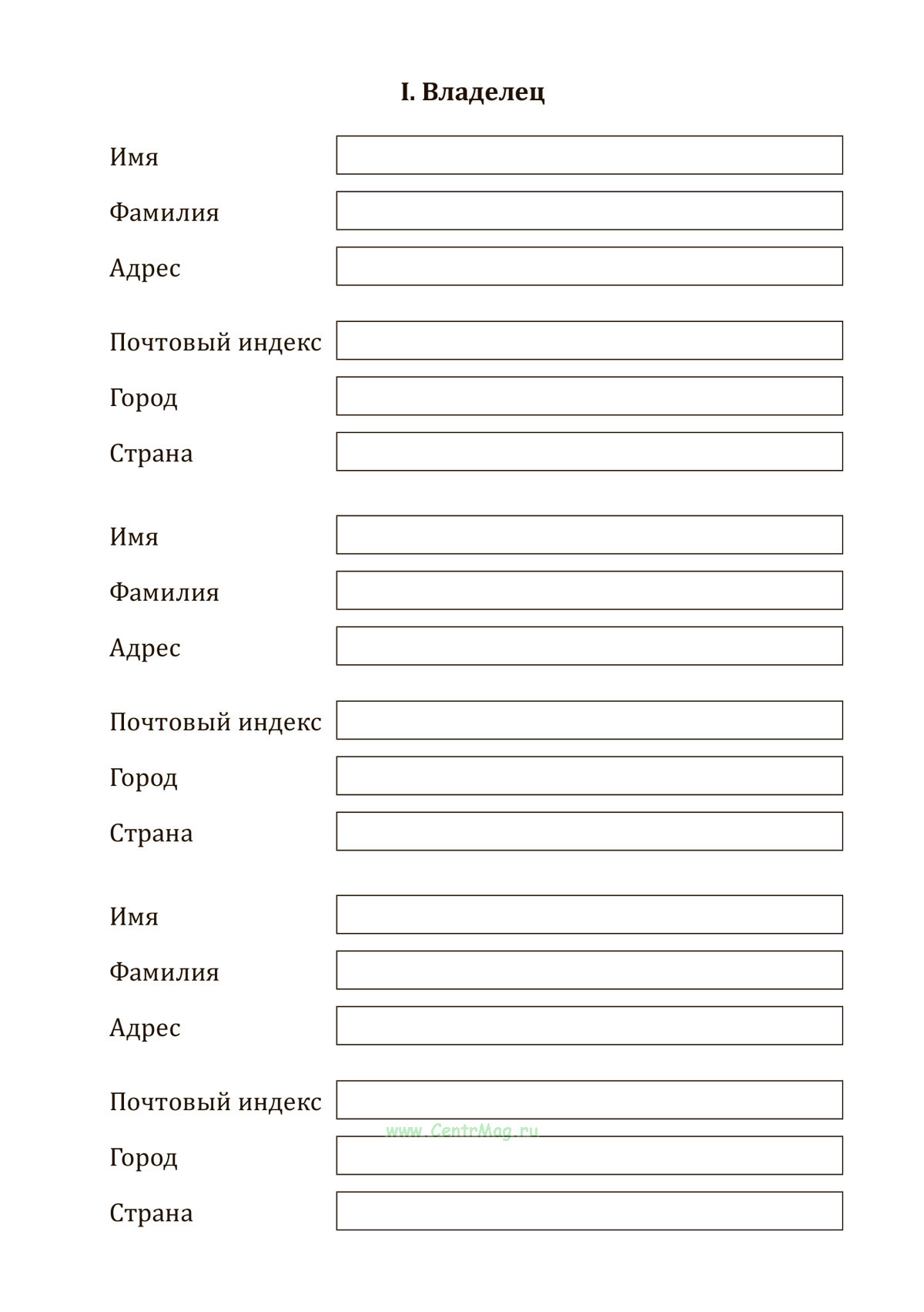 I. Владелец