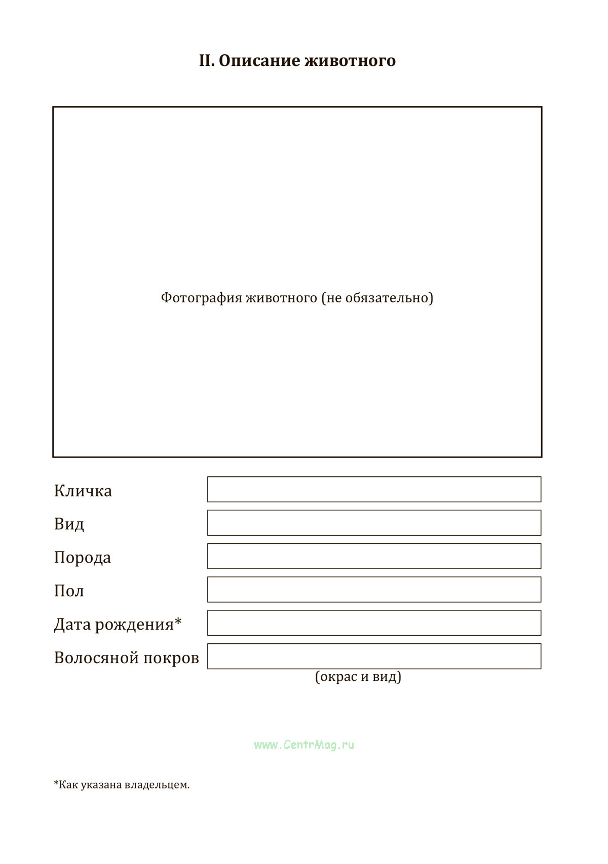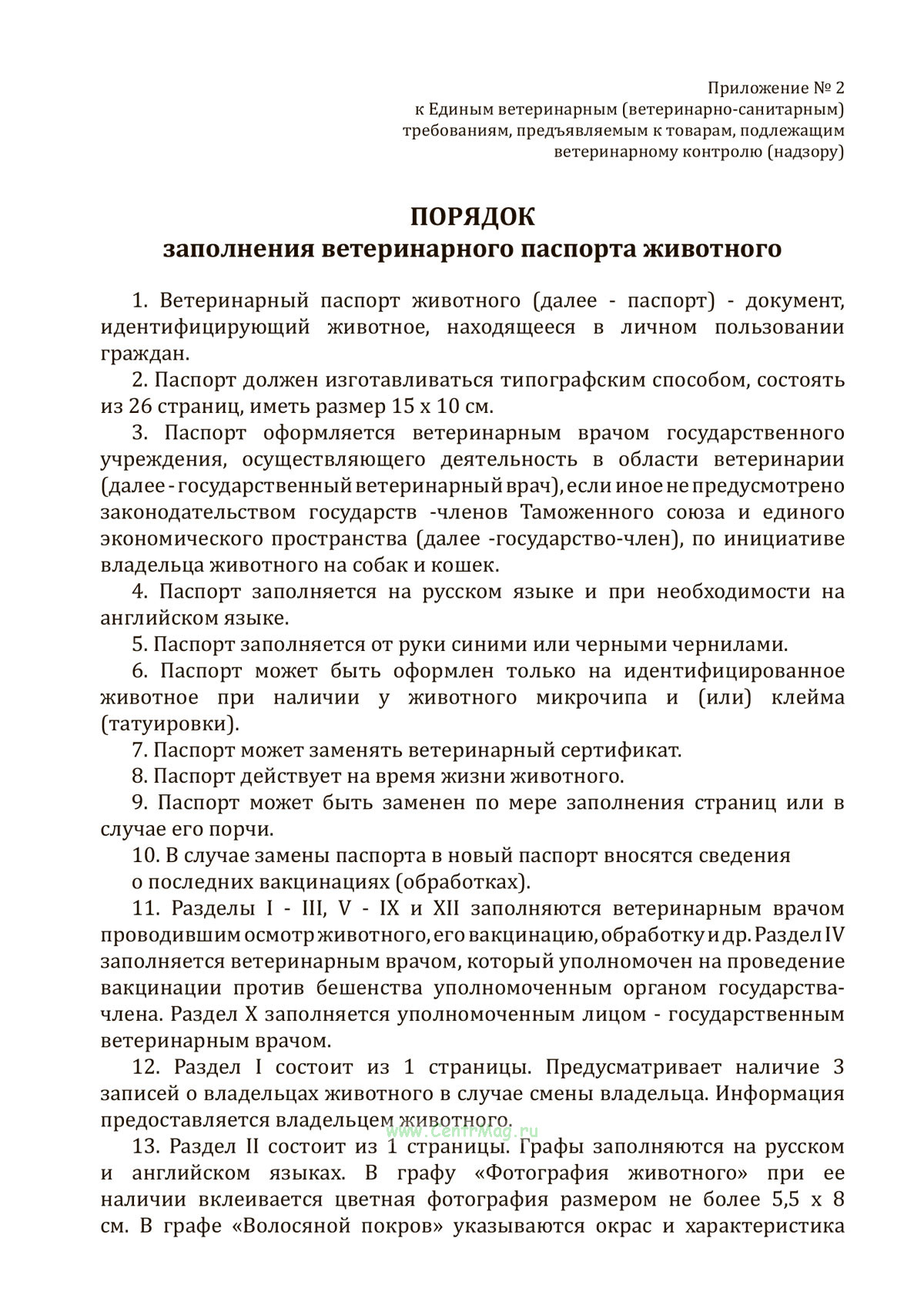Порядок заполнения ветеринарного паспорта животного