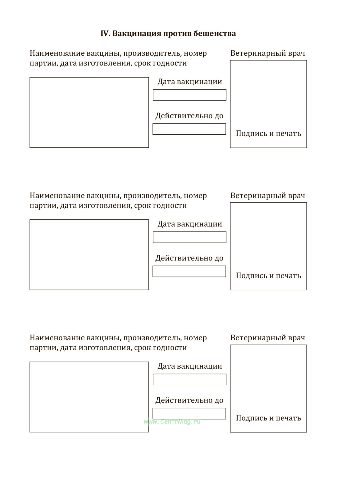 IV. Вакцинация против бешенства
