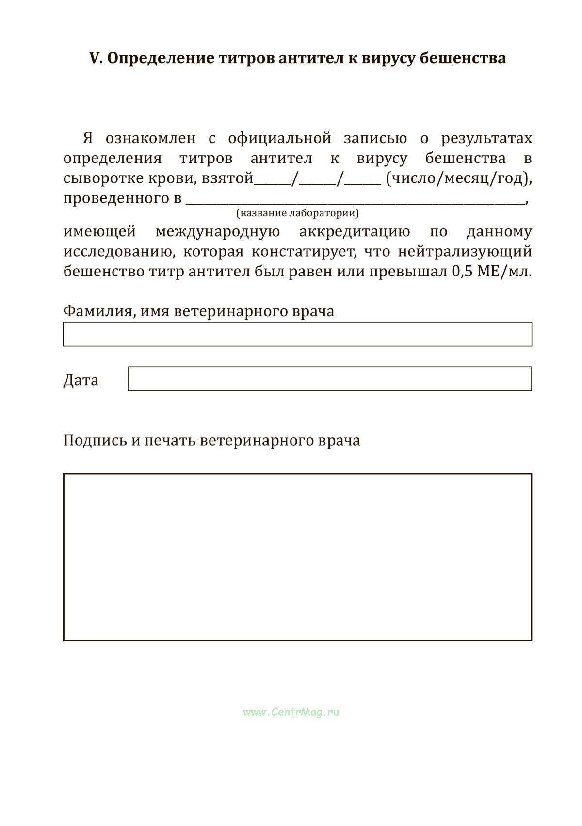 V. Определение титров антител к вирусу бешенства
