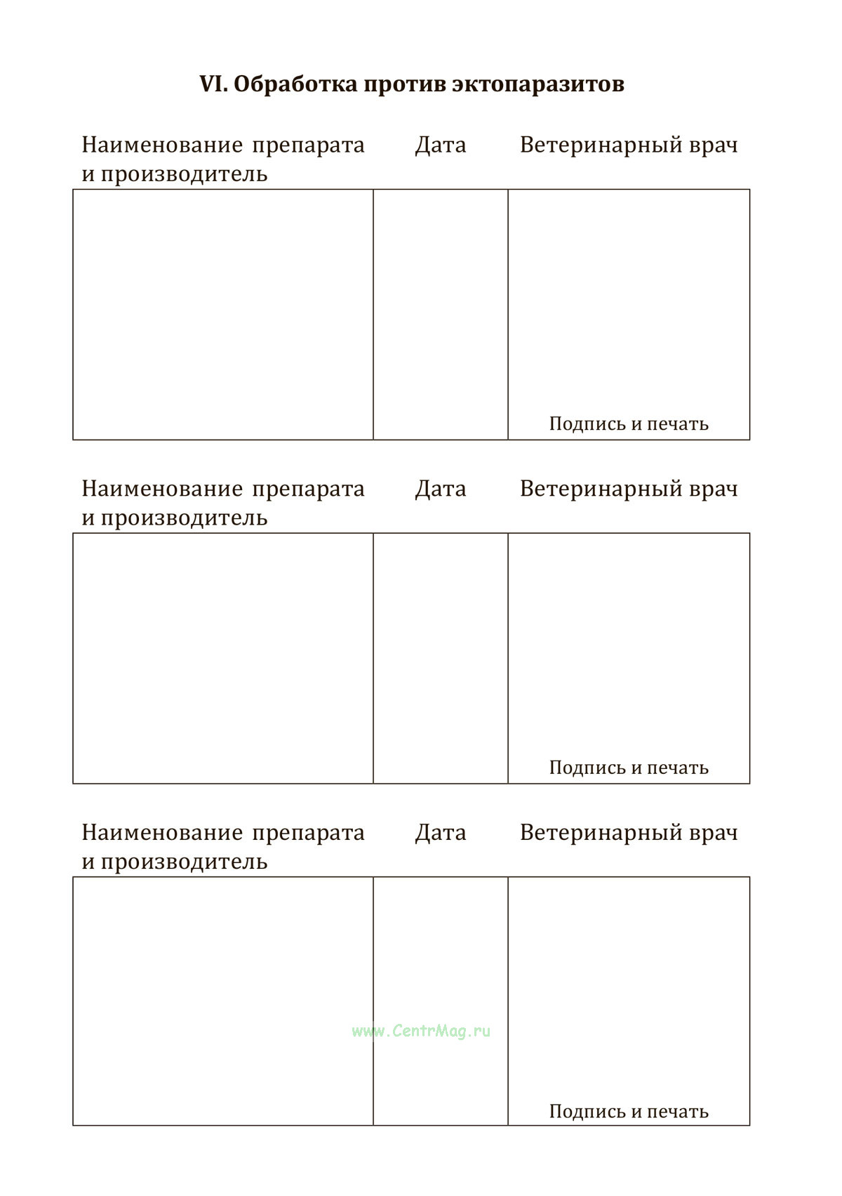 VI. Обработка против эктопаразитов