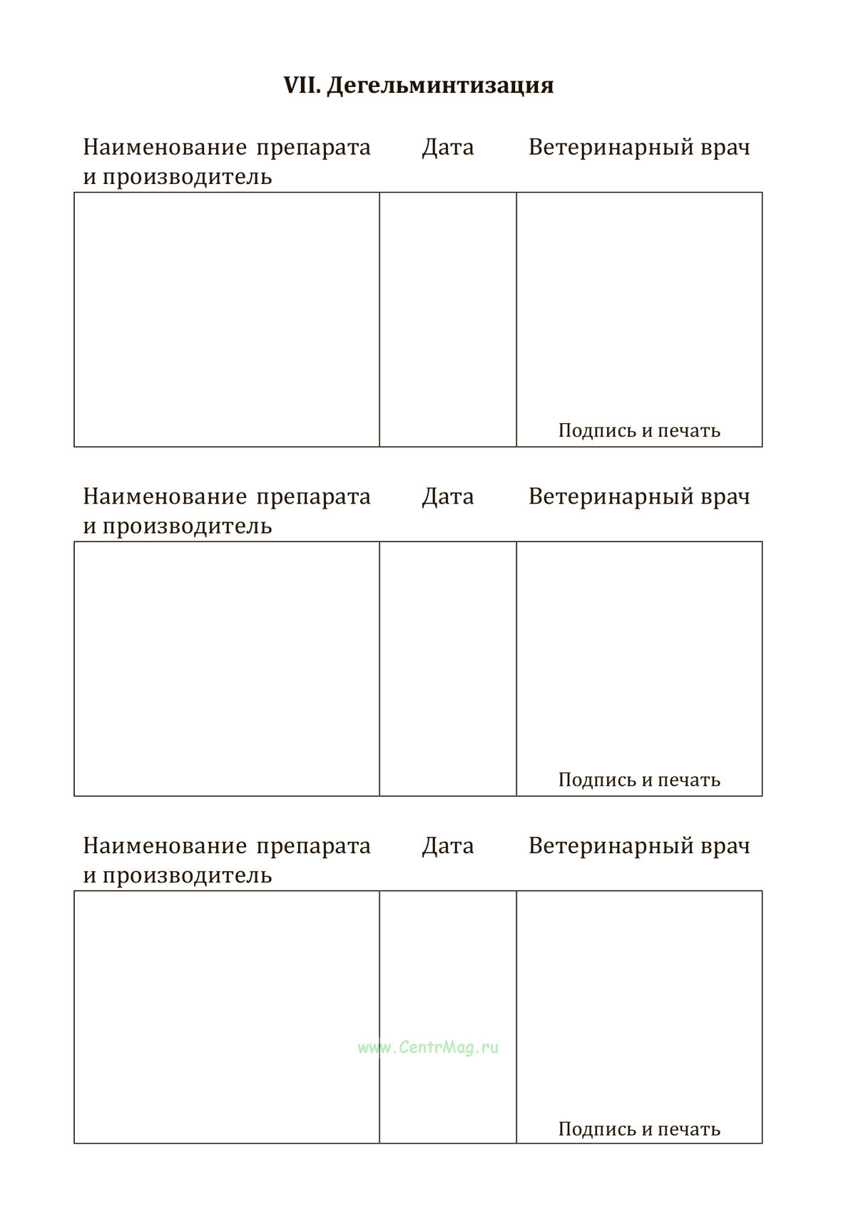 VII. Дегельминтизация