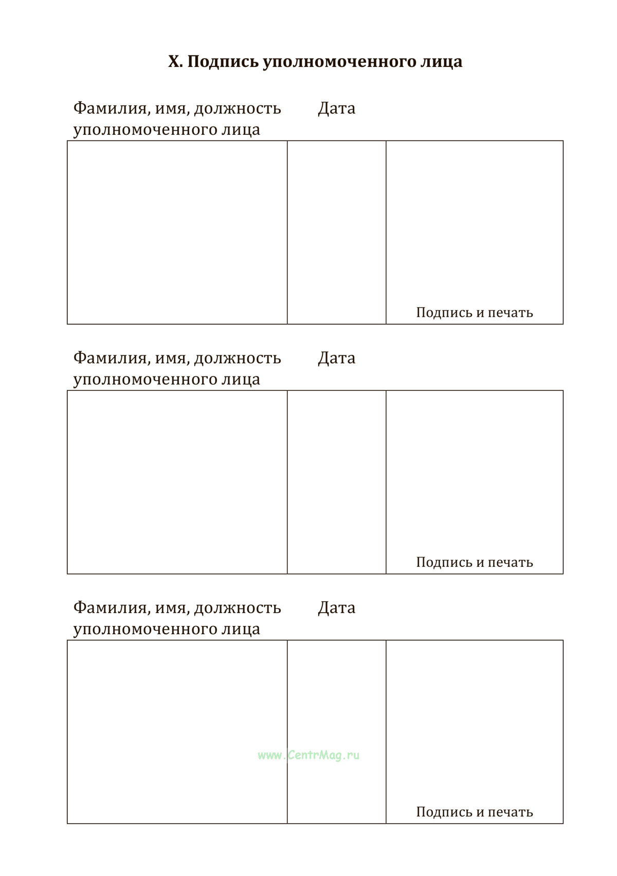 X. Подпись уполномоченного лица