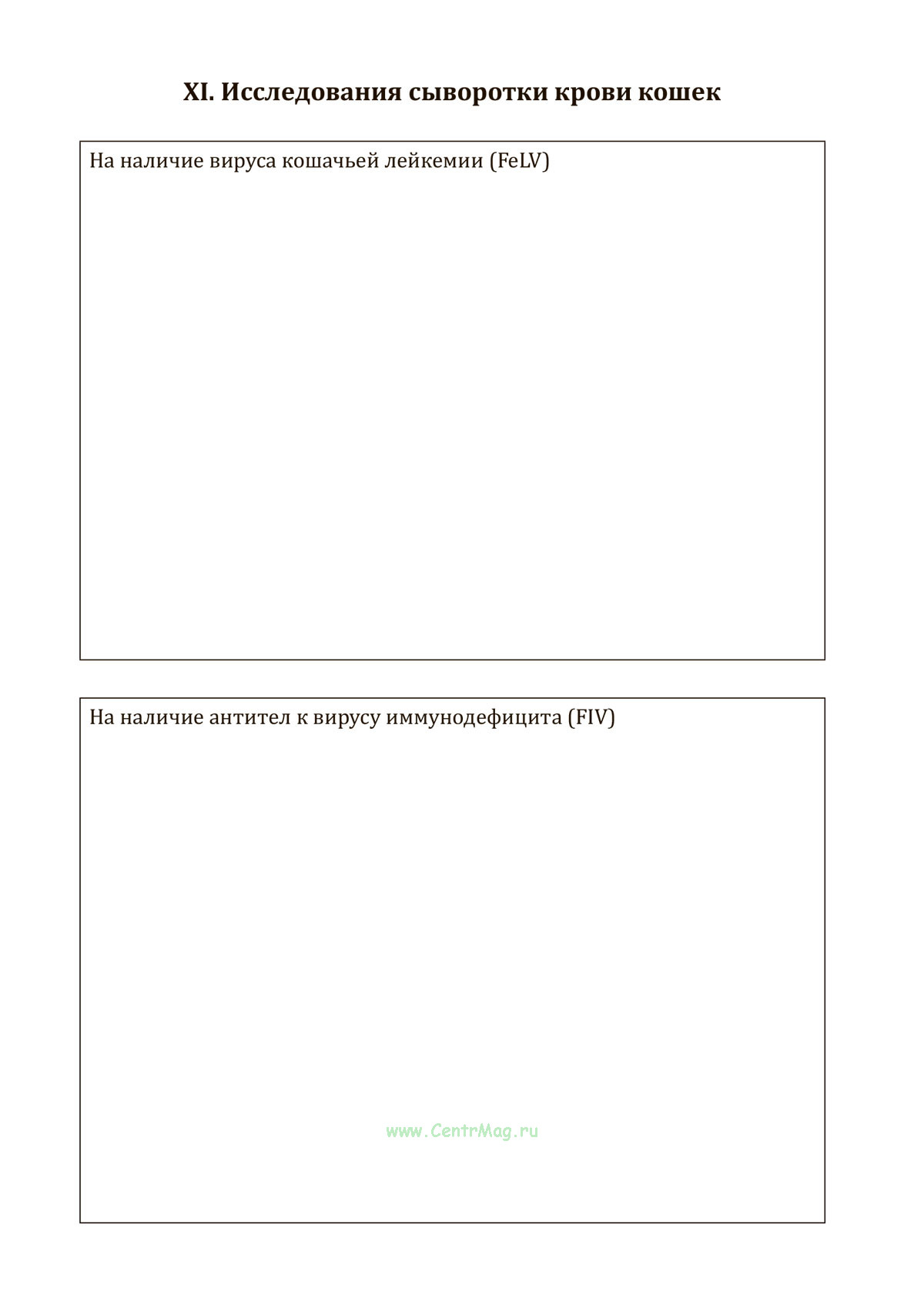 XI. Исследования сыворотки крови кошек