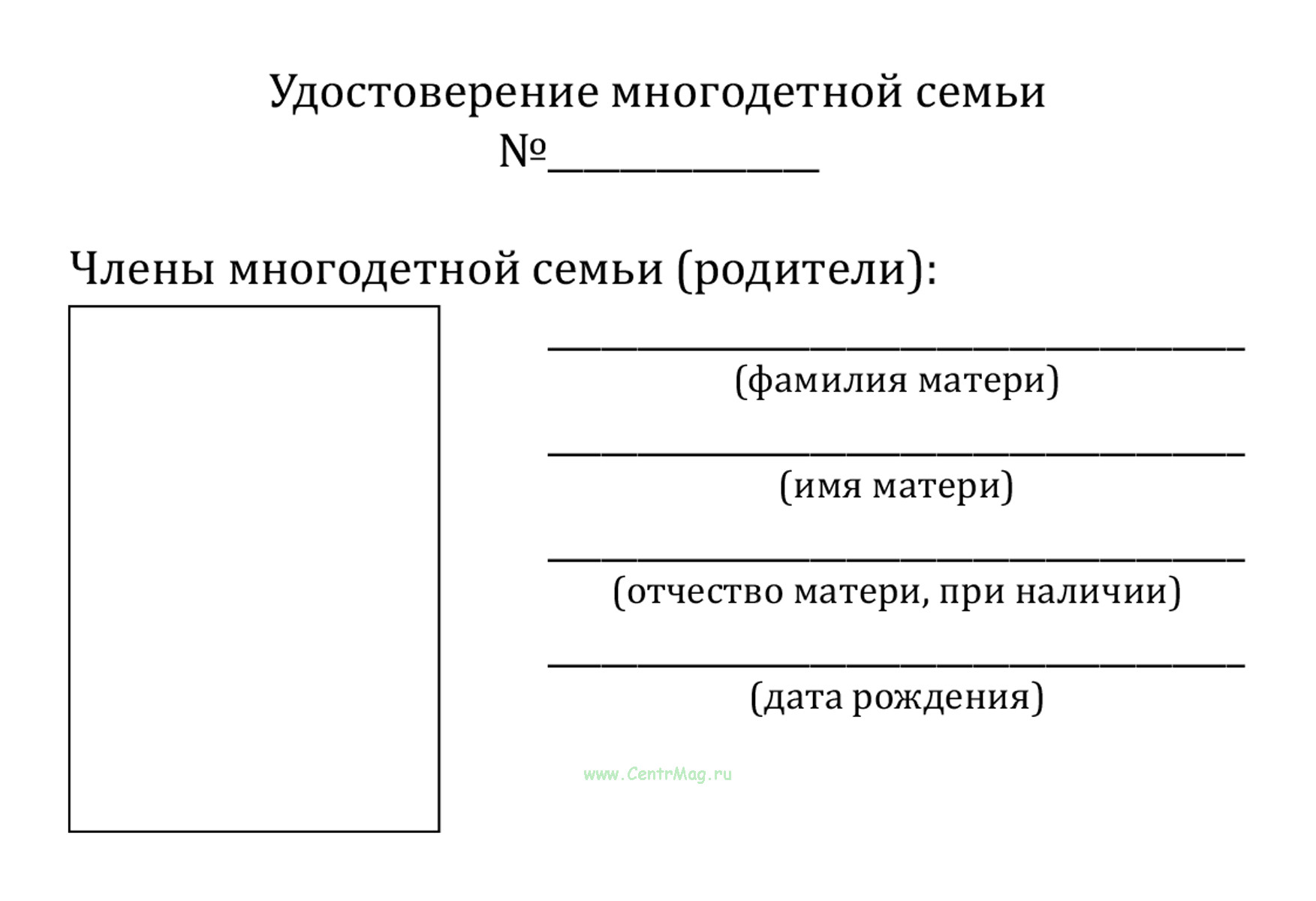 Форма удостоверения "Удостоверение многодетной семьи" разработана на основании законодательства Российской Федерации и нормативных правовых актов субъектов Российской Федерации, регулирующих вопросы социальной поддержки многодетных семей.