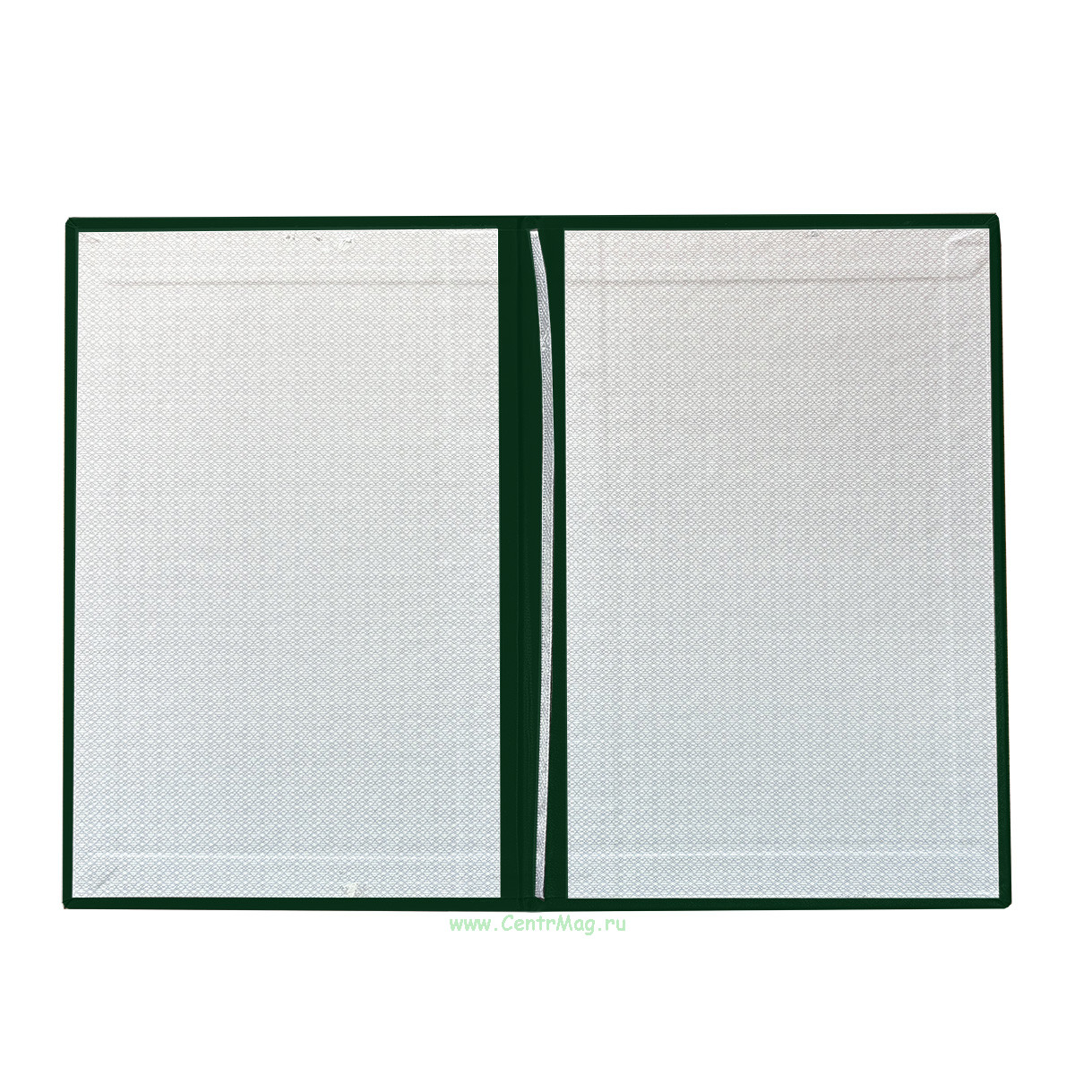 Посередине внутреннего разворота обложки (на сгибе) вклеена белая лента, закрепленная сверху и снизу, для размещения под ней сложенного удостоверения о повышении квалификации.