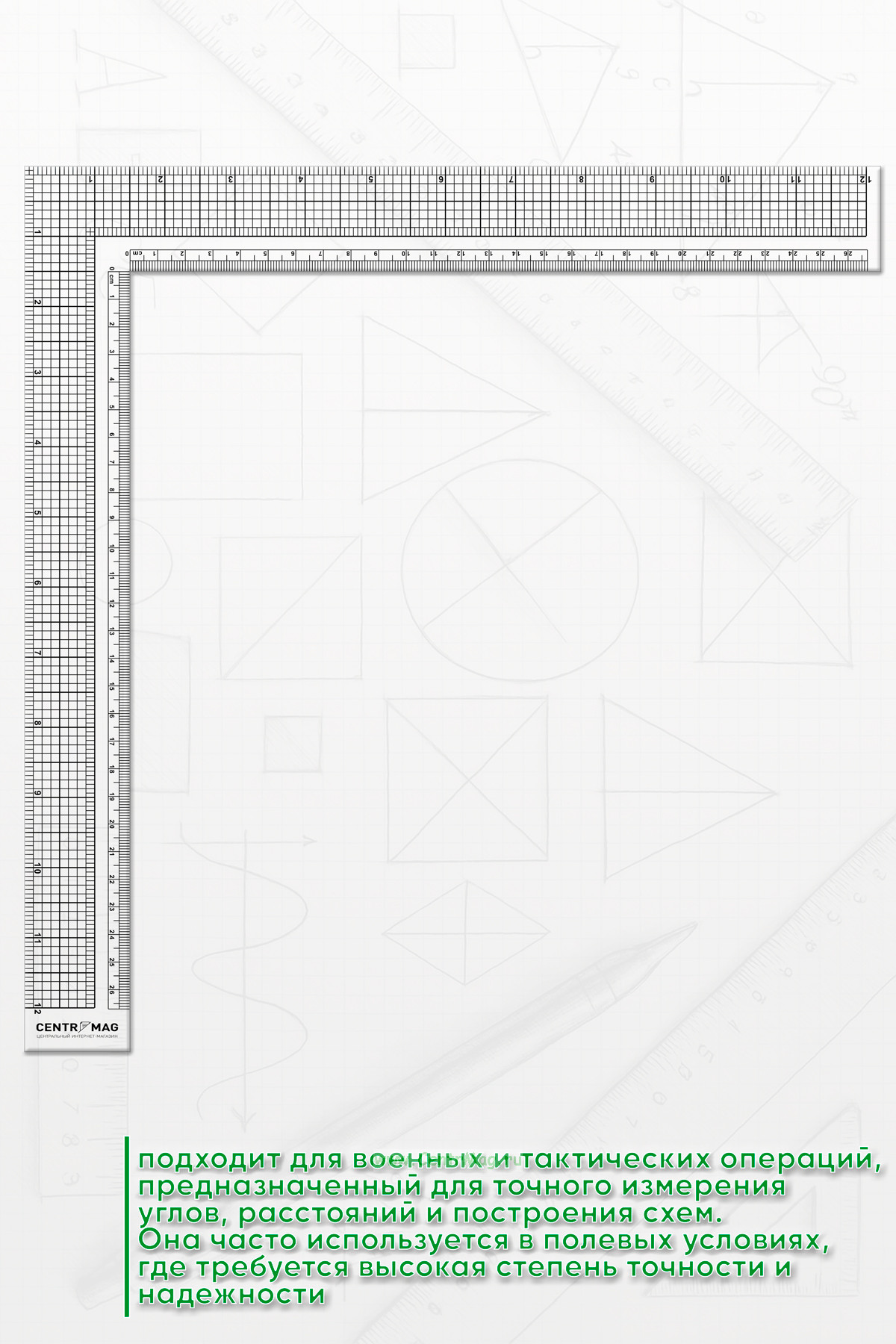Угловая линейка — это незаменимый инструмент для военных и тактических операций, предназначенный для точного измерения углов, расстояний и построения схем. Она часто используется в полевых условиях, где требуется высокая степень точности и надежности