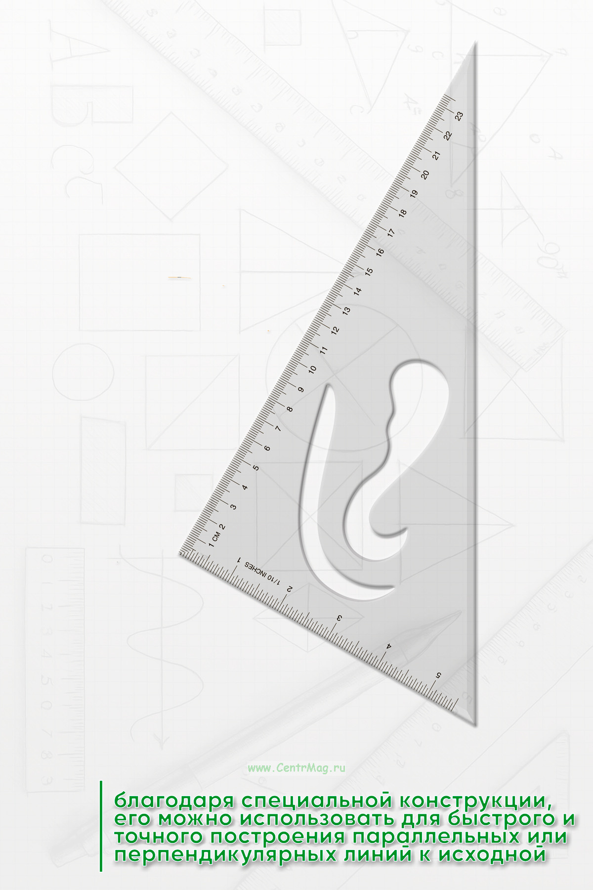 Благодаря специальной конструкции, его можно использовать для быстрого и точного построения параллельных или перпендикулярных линий к исходной.