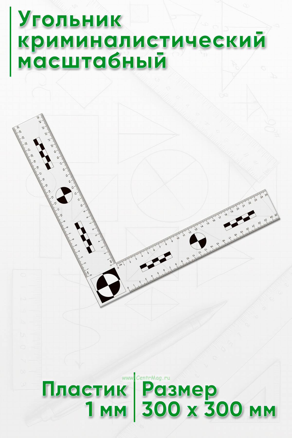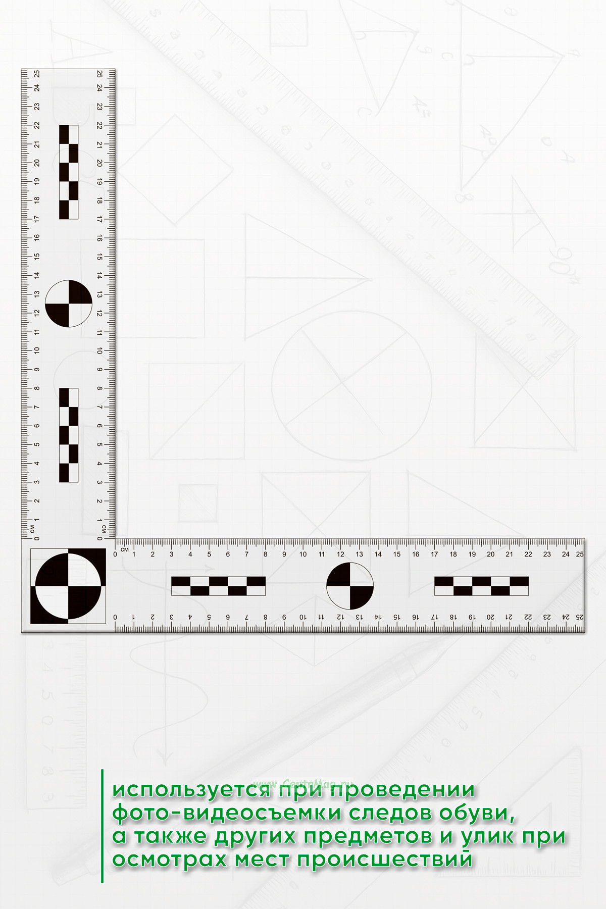 Линейка угловая используется при проведении фото-видеосъемки следов обуви, а также других предметов и улик при осмотрах мест происшествий