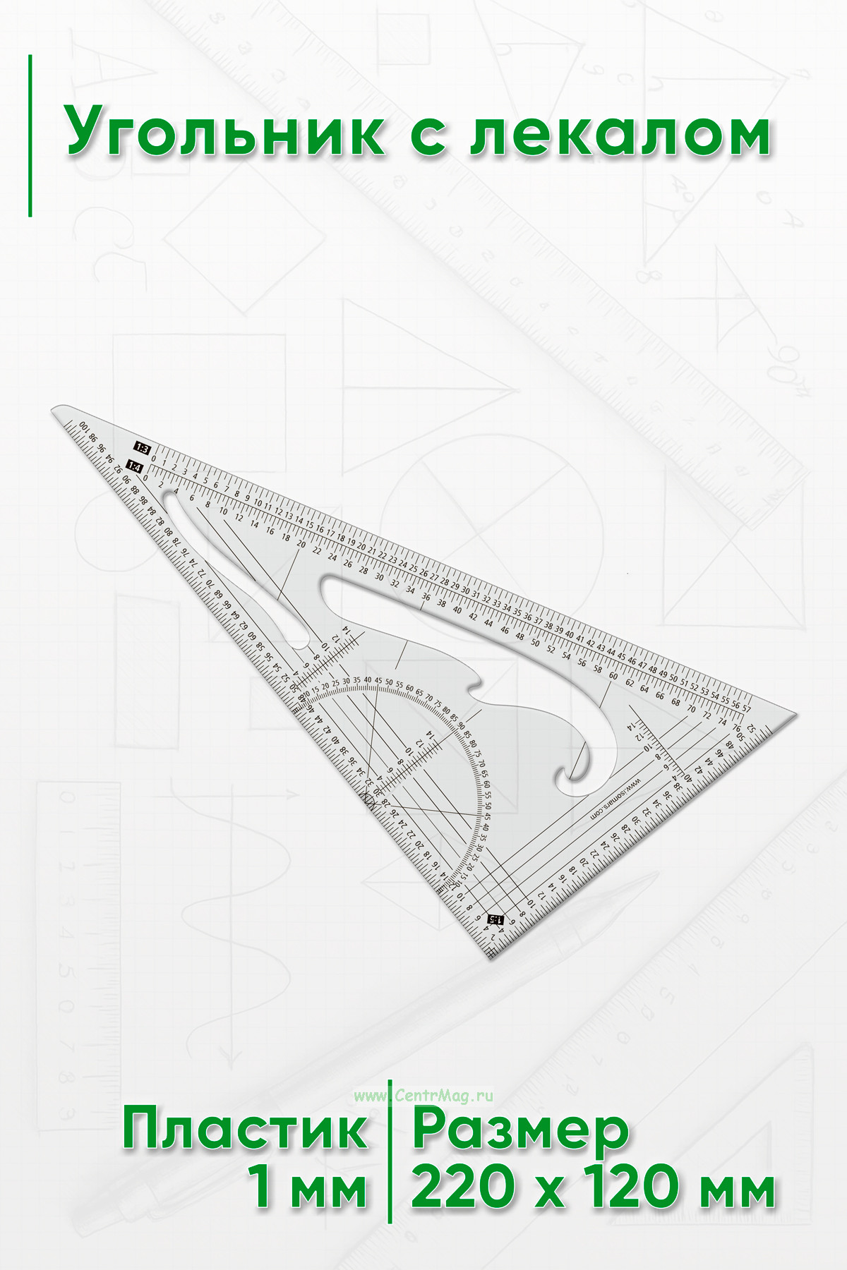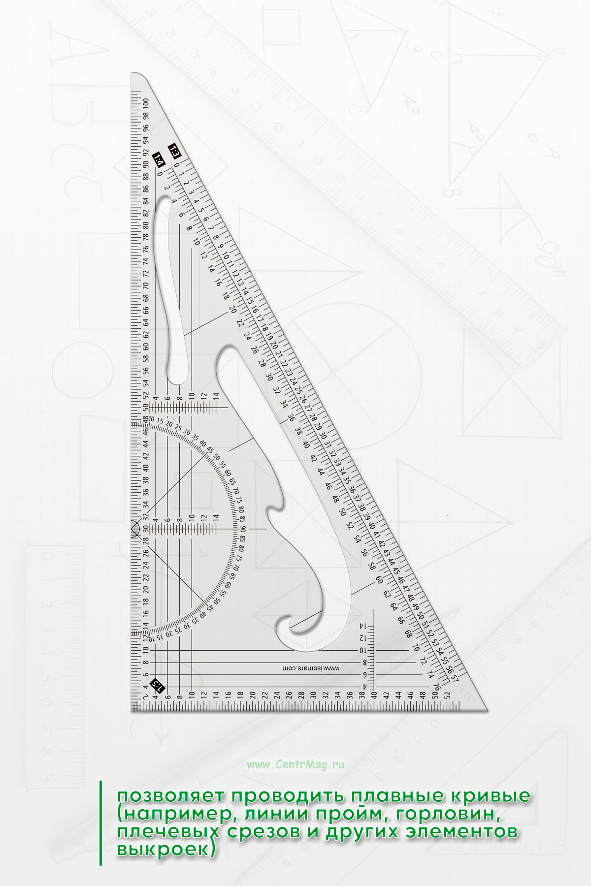 Угольник с лекалом — это комбинированный инструмент, сочетающий функции угольника и лекала.