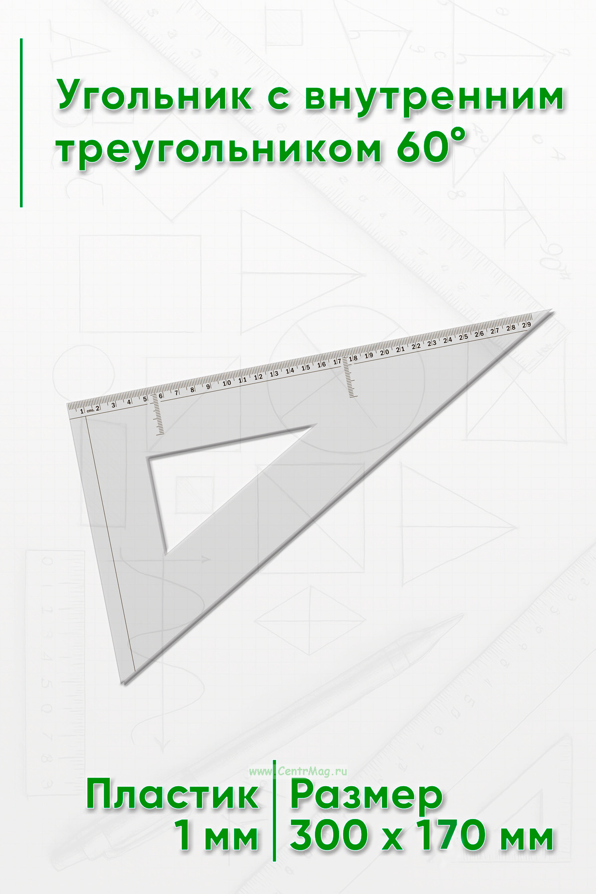 Угольник с внутренним треугольником 60° — это чертёжный инструмент, представляющий собой угольник, внутри которого расположен дополнительный треугольник с углом 60°.