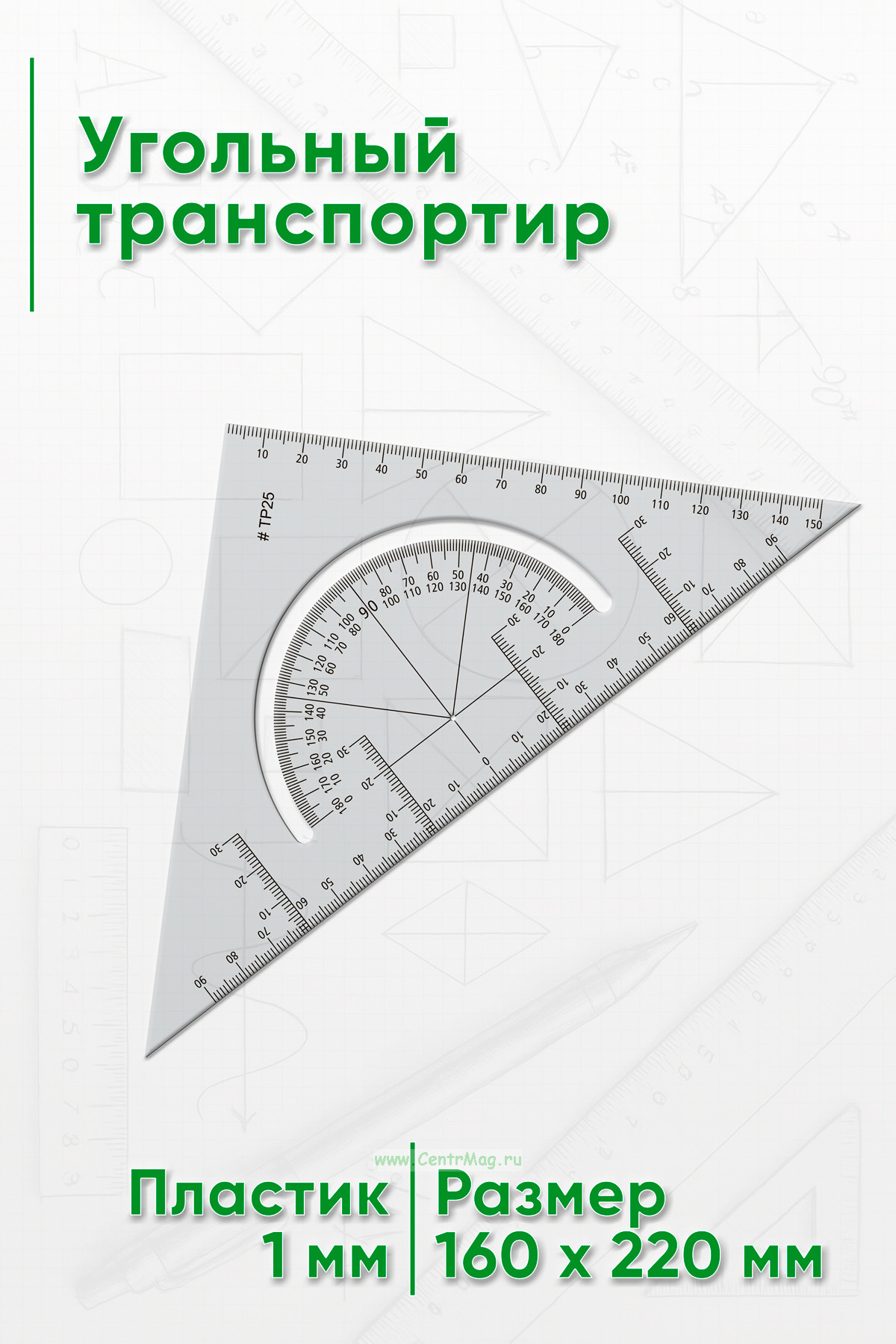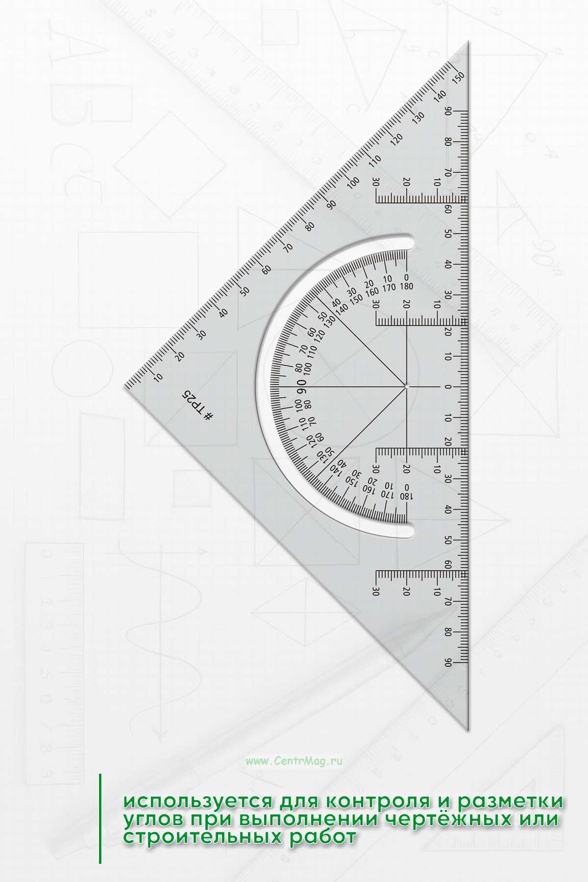 Используется для контроля и разметки углов при выполнении чертёжных или строительных работ.