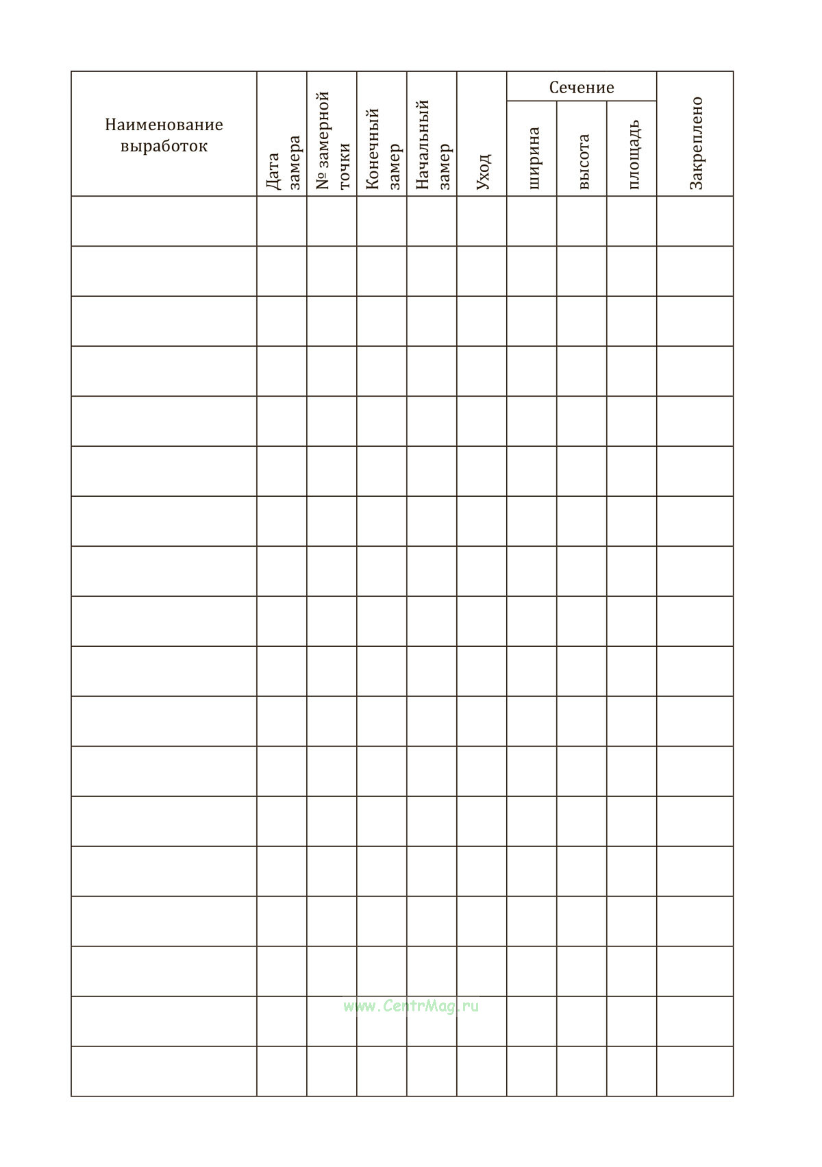 Журнал предназначен для фиксации результатов замеров горных выработок, их геометрических параметров и изменений во времени с целью контроля за объемами проведённых работ.