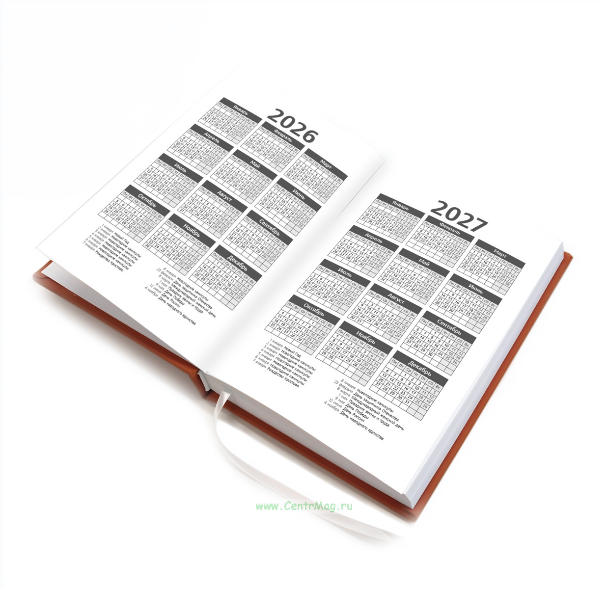 Ежедневник датированный на 2026 год в твердом переплете. По желанию клиента, можно сделать тиснение с названием Вашей фирмы на обложке.