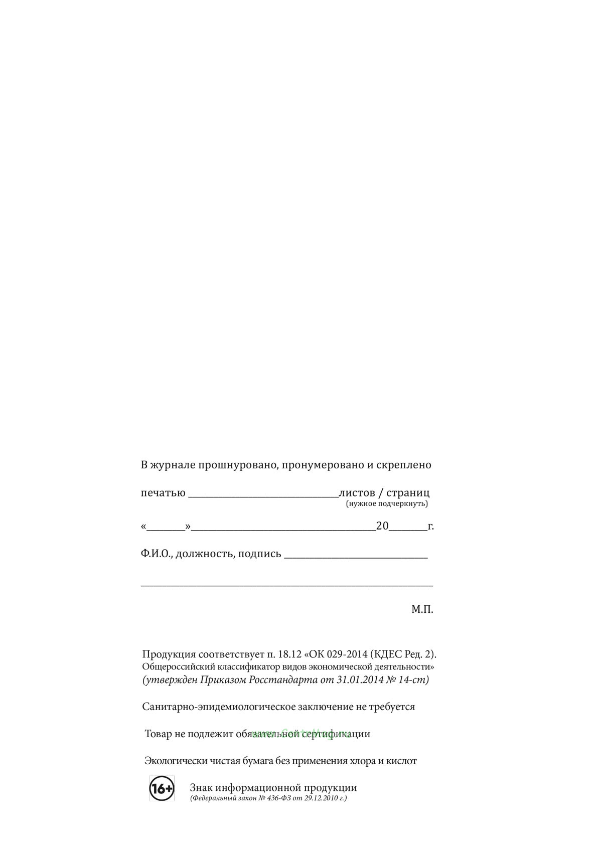 Вы получаете печатную продукцию прошнурованной и c местом для вашей печати в соответствии с действующими нормативными документами: