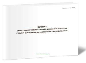 Форма журнала регистрации результатов обследования объектов с целью установления зараженности вредителями (Форма № ЗПП-56) утверждена Приказом Министерства сельского хозяйства и продовольствия Республики Беларусь от 14.06.2011 № 233 "Об установлении примерных отраслевых форм документации по учету движения сырья, материалов и готовой продукции элеваторной, мукомольно-крупяной, комбикормовой, хлебопекарной и макаронной промышленности и утверждении Инструкции о порядке применения и заполнения примерных отраслевых форм документации по учету движения сырья, материалов и готовой продукции элеваторной, мукомольно-крупяной, комбикормовой, хлебопекарной и макаронной промышленности"