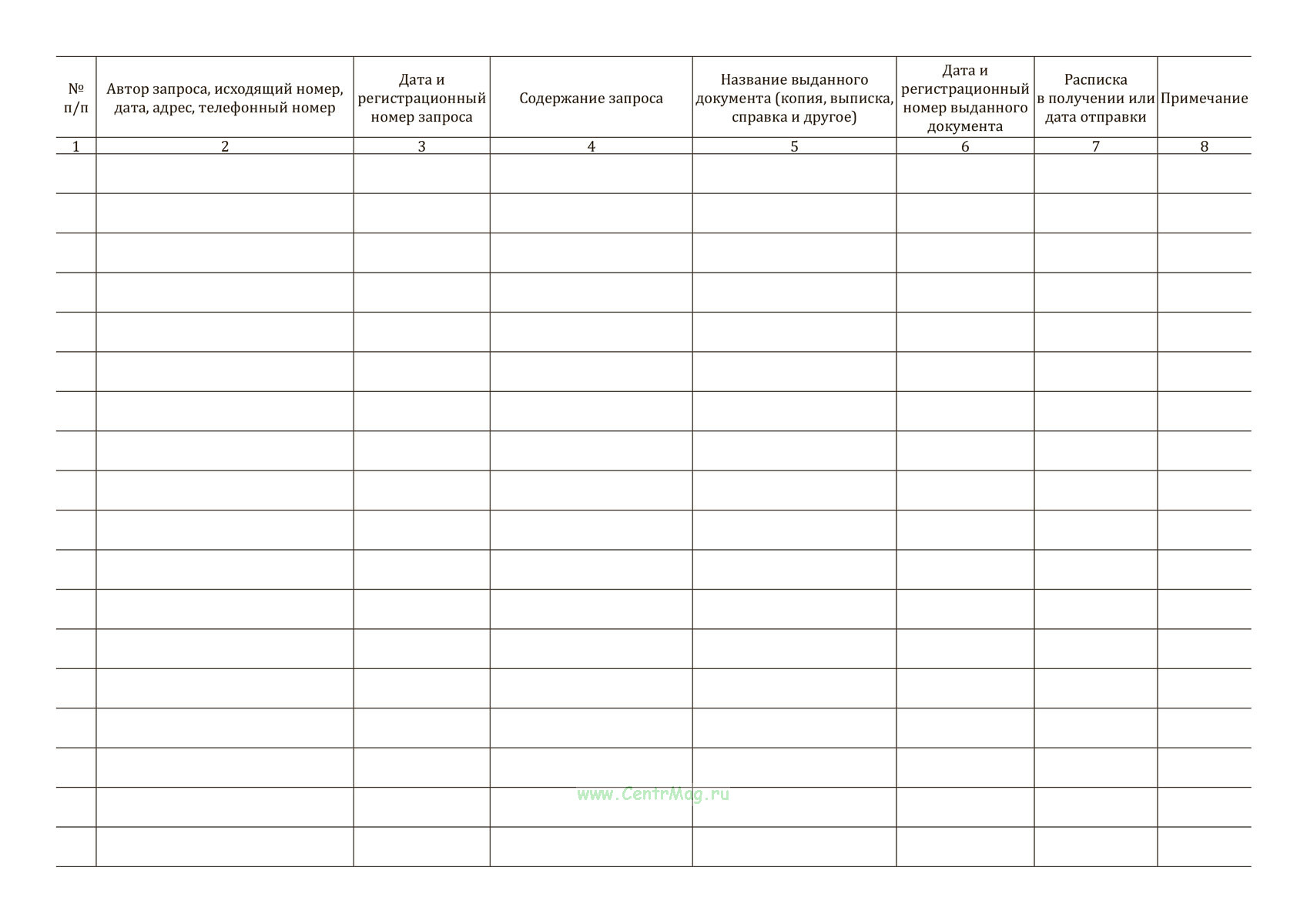 Журнал регистрации выданных копий, выписок, документов имеет графы: