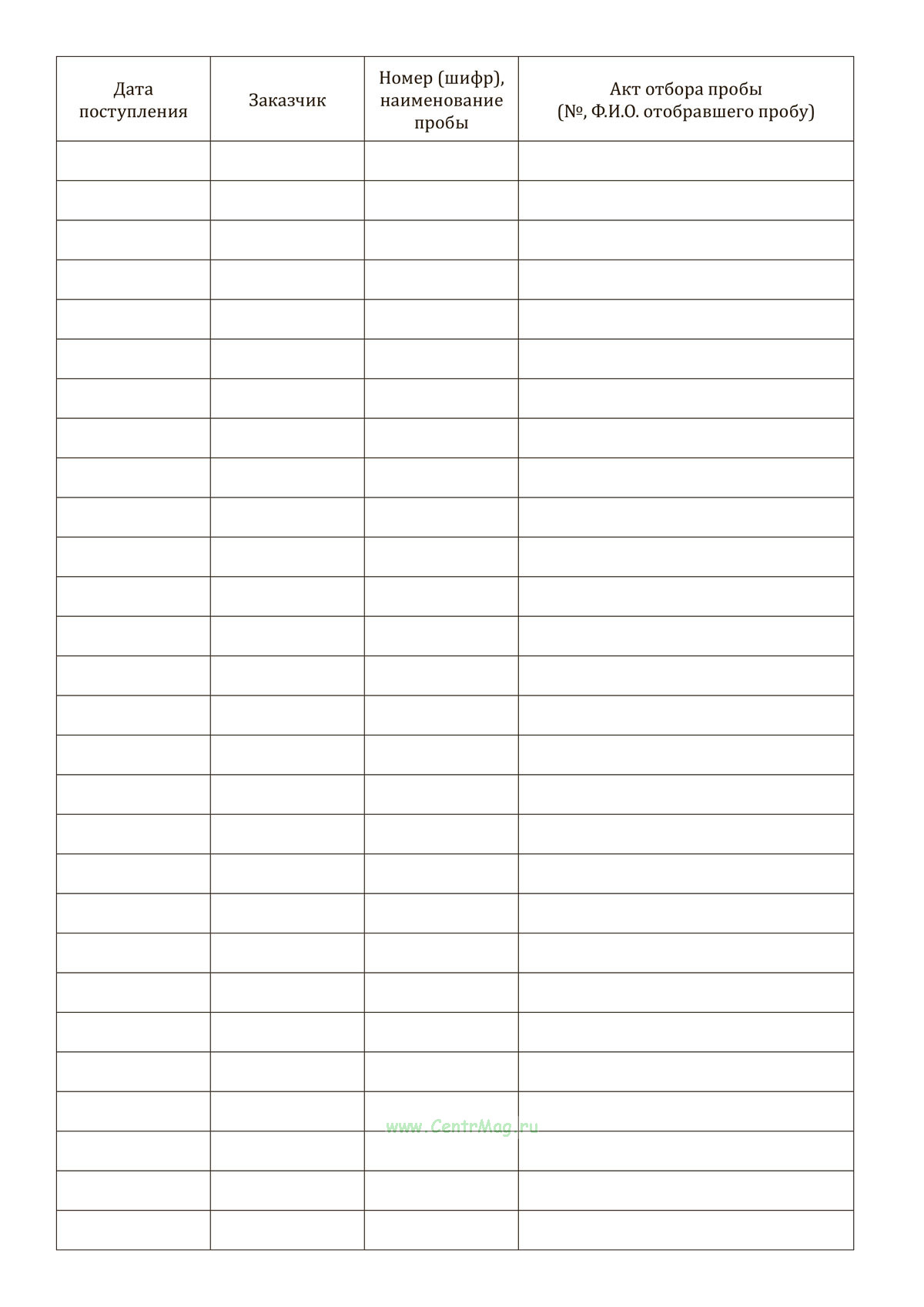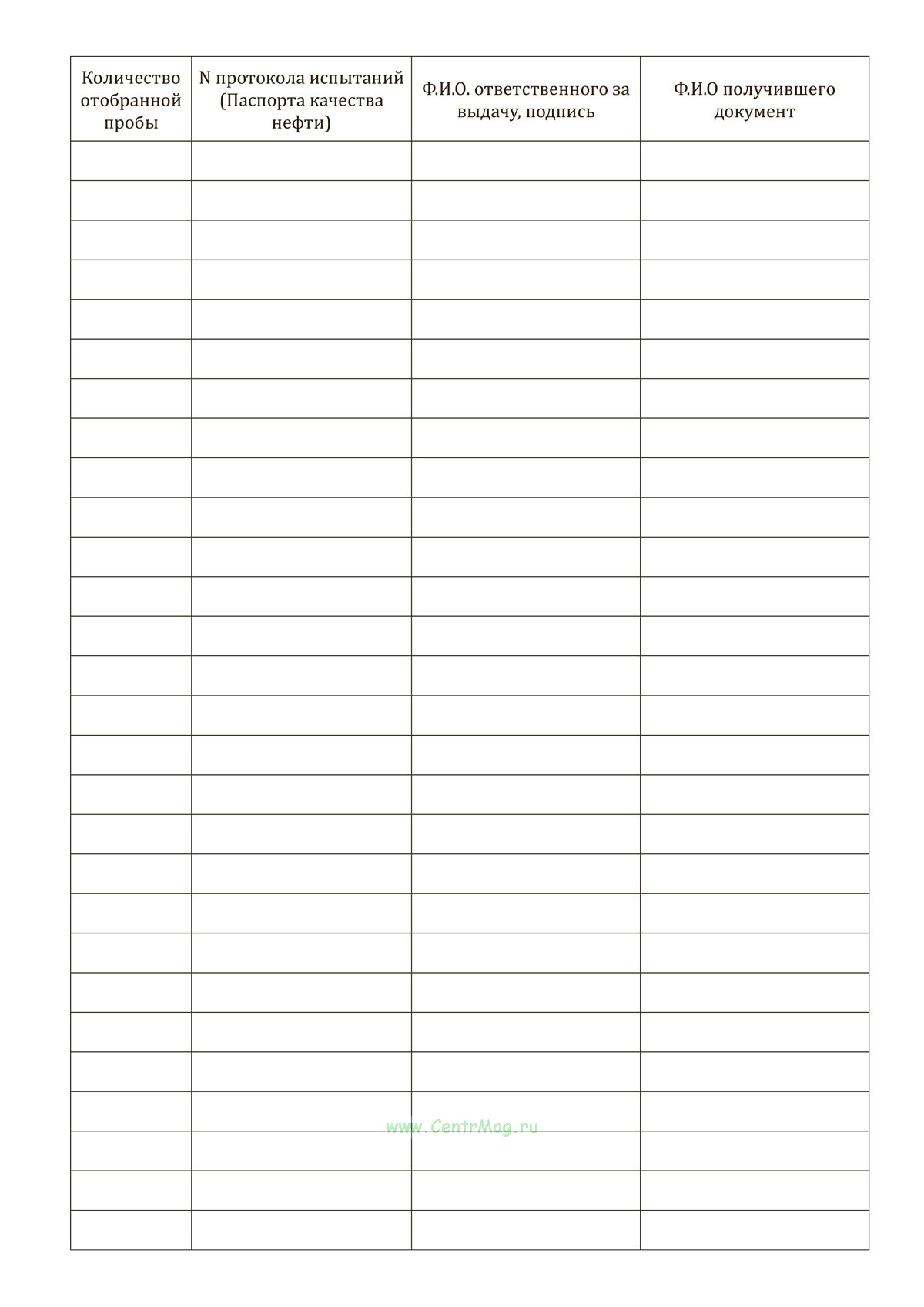 Форма журнала соответствует Приложению И (Таблица И.2) к "РМГ 94-2009 Государственная система обеспечения единства измерений. Испытательные лаборатории, осуществляющие контроль качества нефти при приемо-сдаточных операциях".