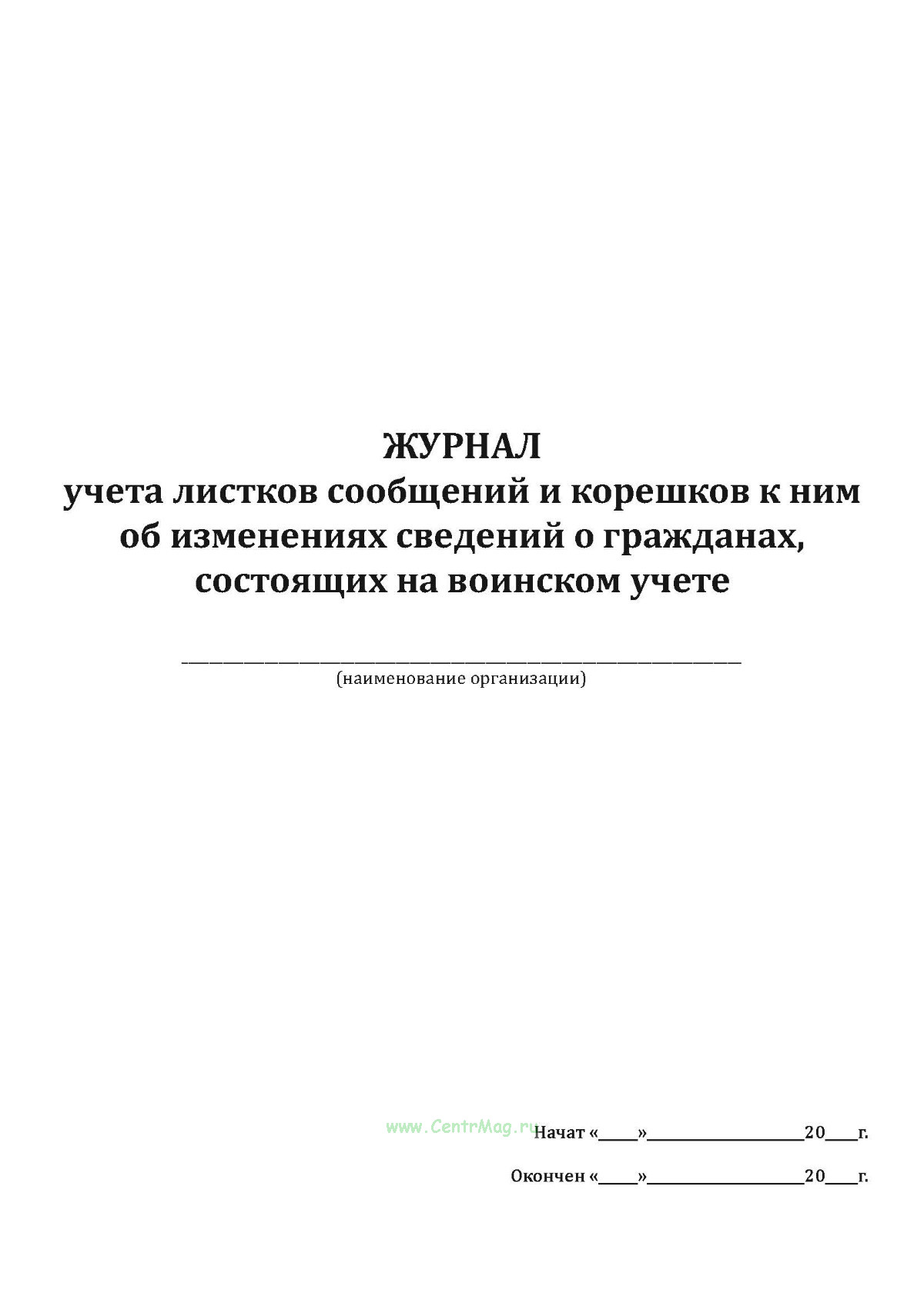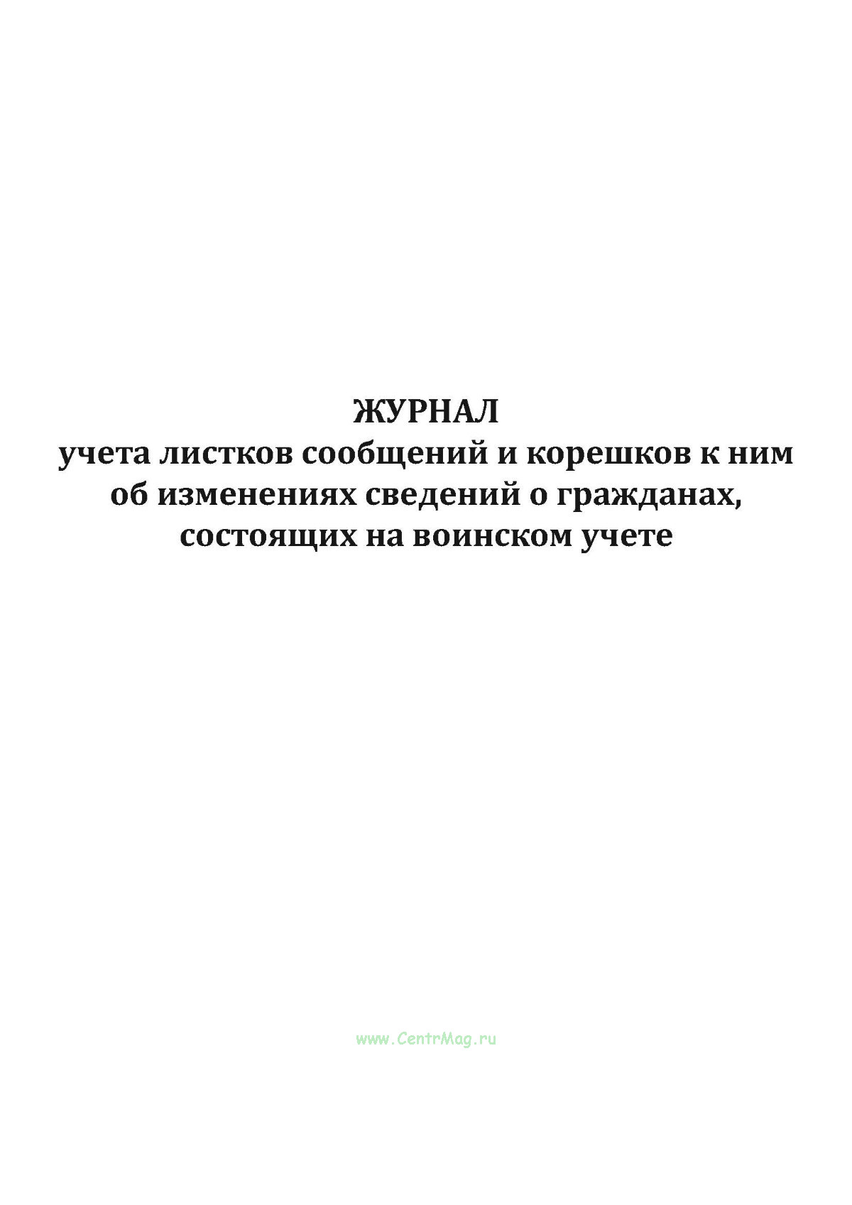 Журнал учета листков сообщений и корешков к ним не имеет унифицированной формы, поэтому работник ответственный за ведение воинского учета в организации может оформить его в произвольной форме.