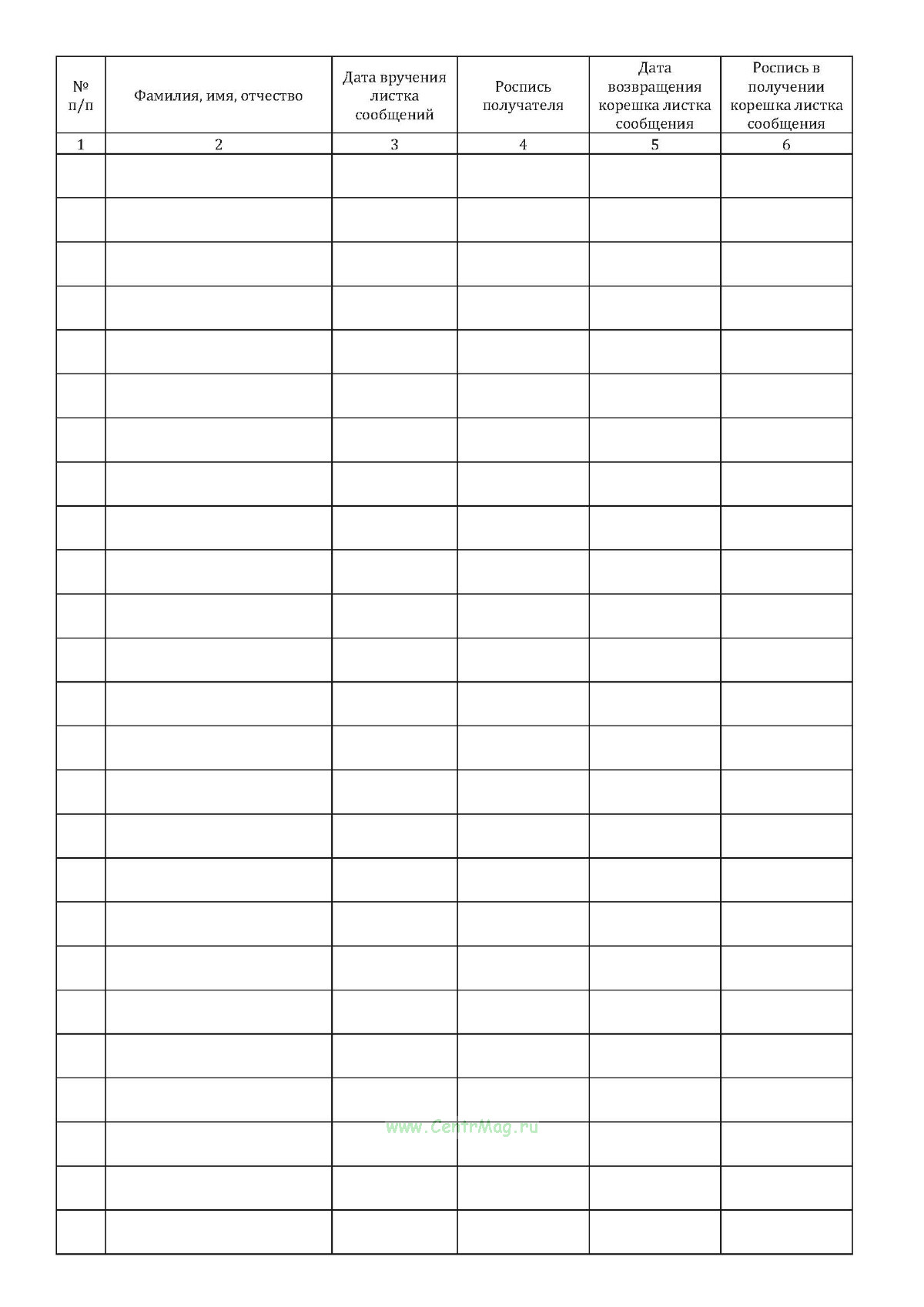 - по последней записи видно общее количество выданных листков сообщений и корешков к ним;