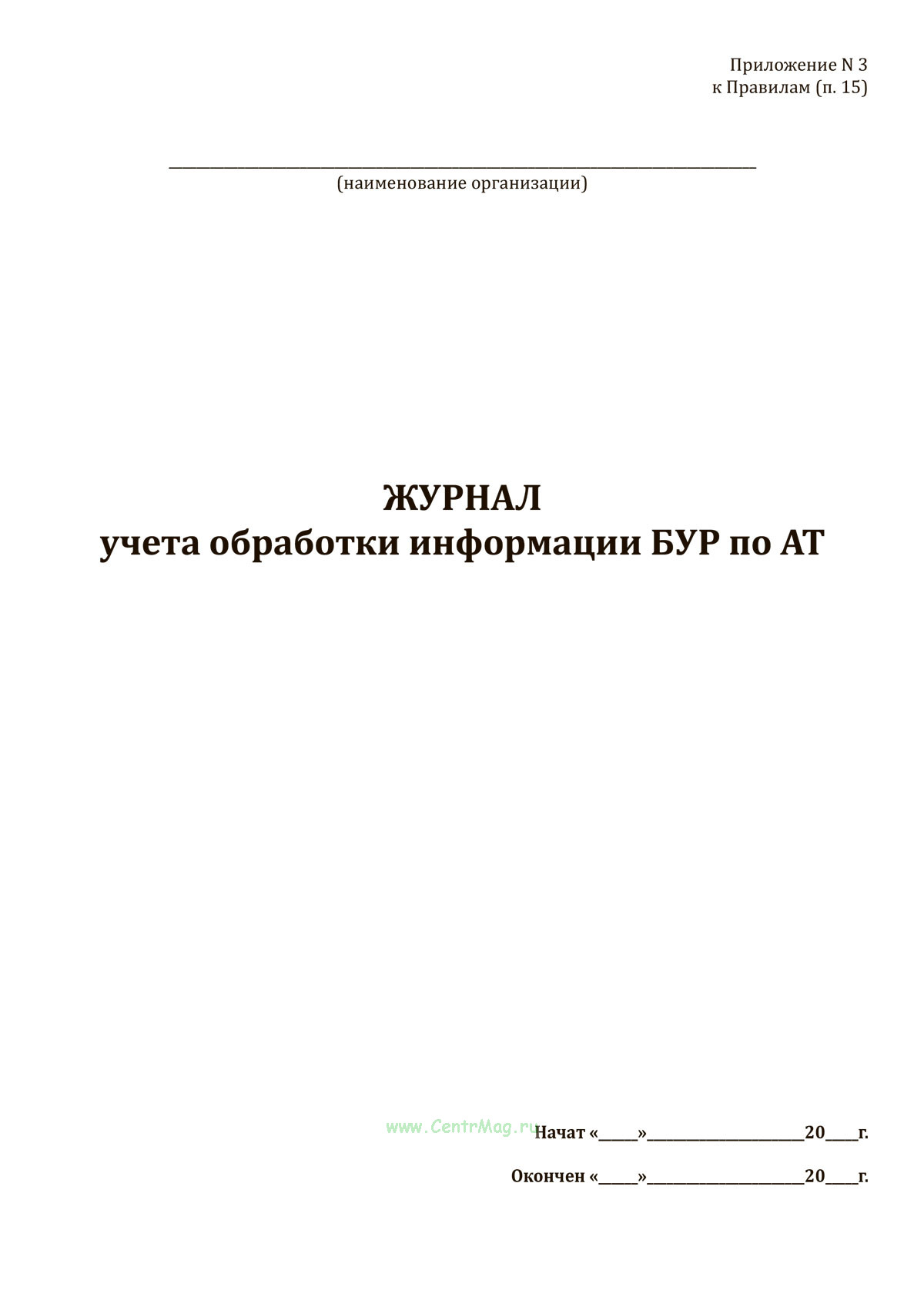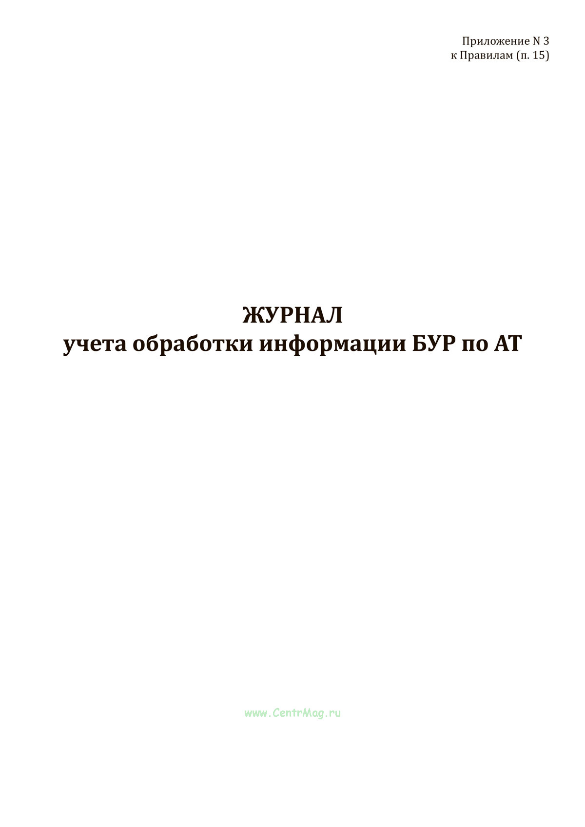 Форма Журнала учета обработки информации БУР по АТ соответствует Приложению N 3 к Приказу Министра обороны РФ от 17.10.2001 N 420 "Об утверждении Федеральных авиационных правил по организации объективного контроля в государственной авиации".