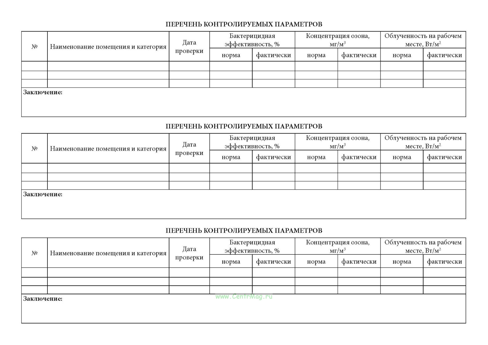 Разделы журнала учета работы ультрафиолетовых облучателей: