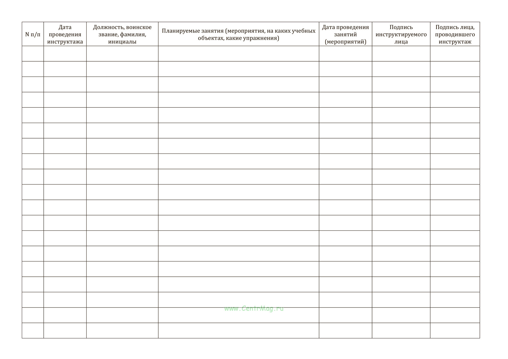 Журнал учета занятий (инструктажей) по выполнению требований безопасности в учебном центре (войсковом стрельбище) войсковой части имеет графы: