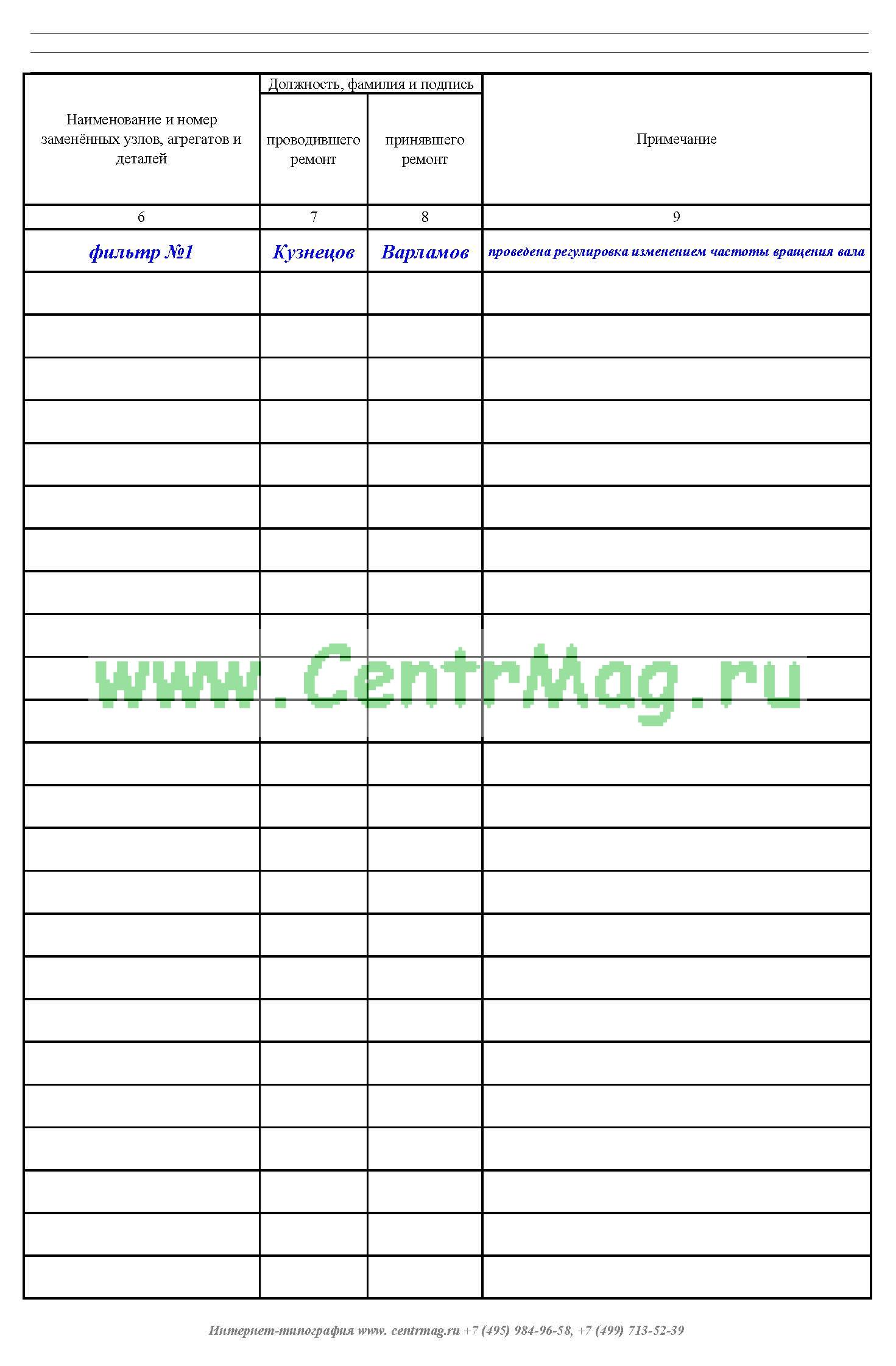 6. Наименование и номер заменённых узлов, агрегатов и деталей