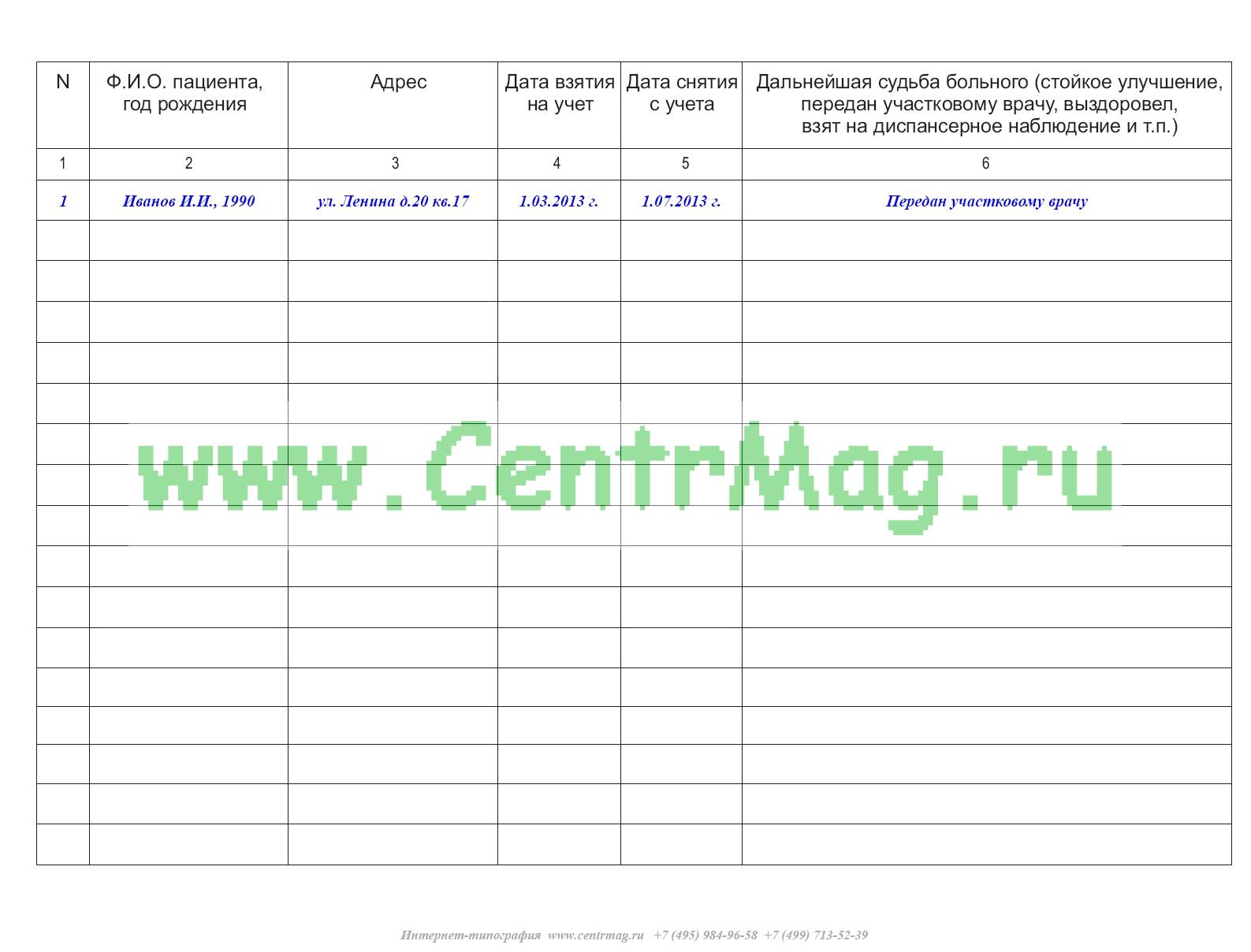 На каждое заболевание, по которому проводится диспансерное наблюдение, выделяется часть журнала.