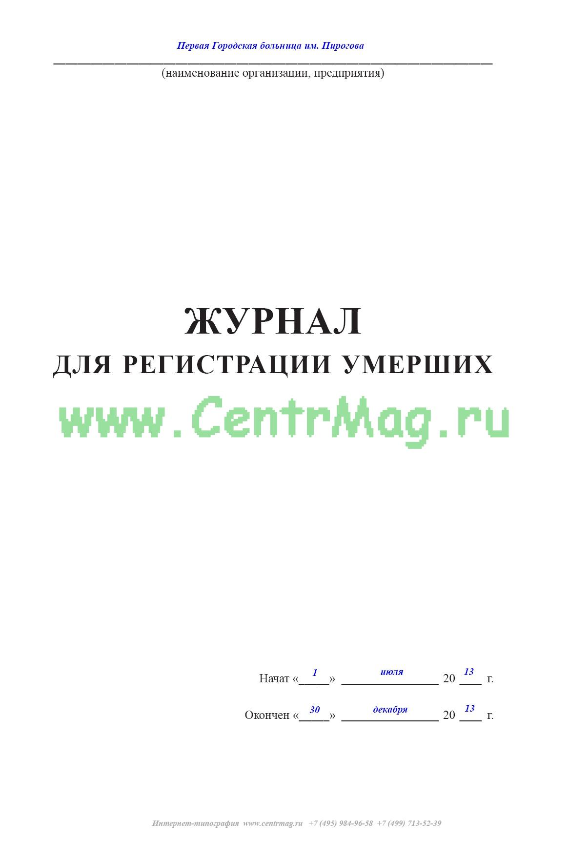 Журнал для регистрации умерших имеет графы:
