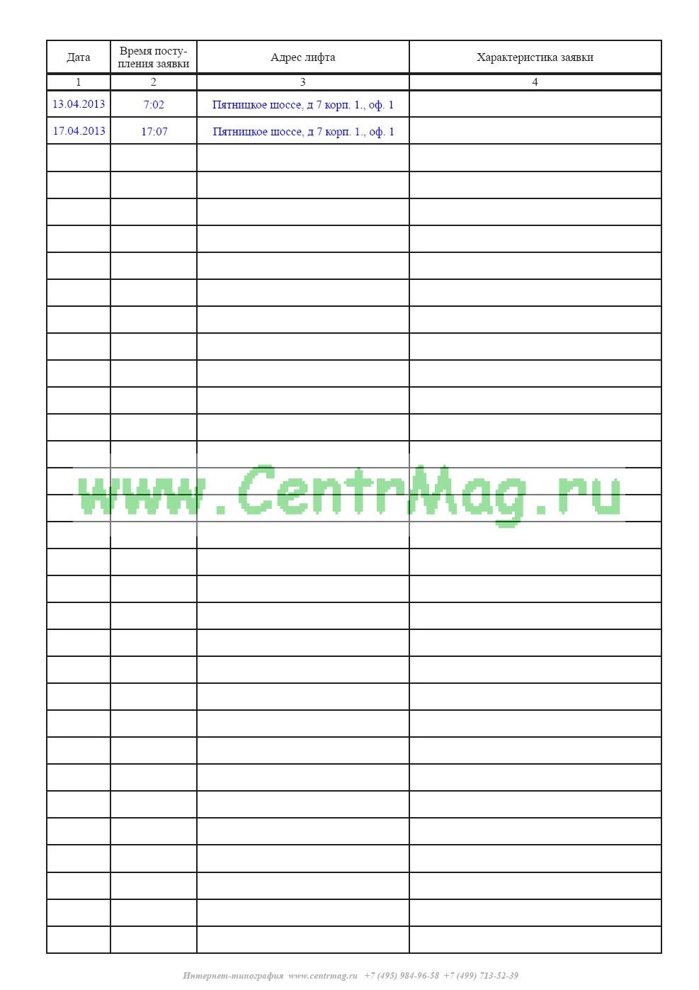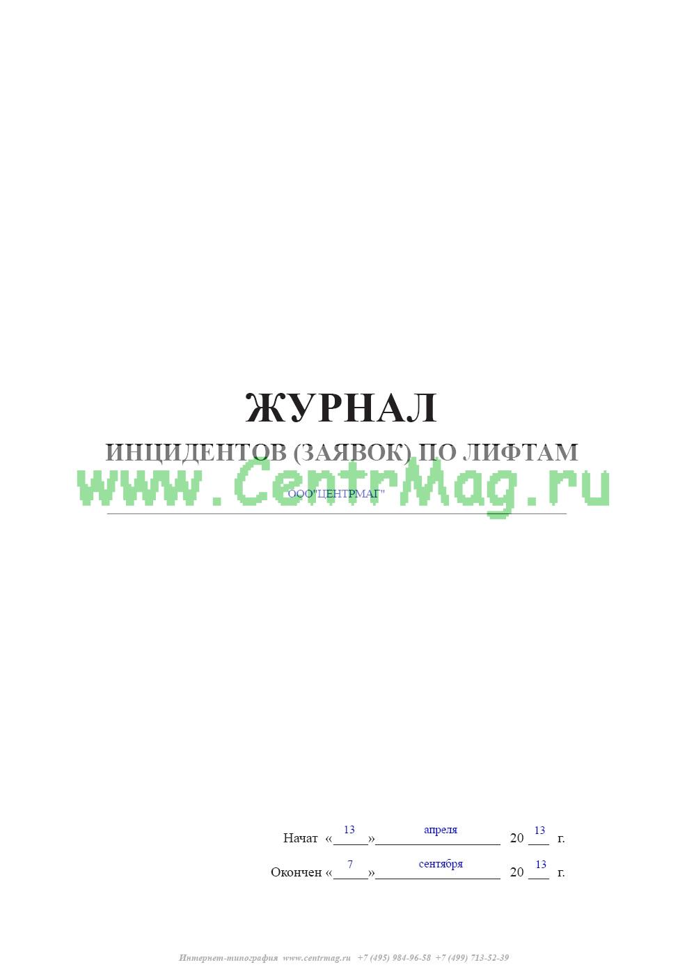 Журнал инцидентов (заявок) по лифтам имеет графы: