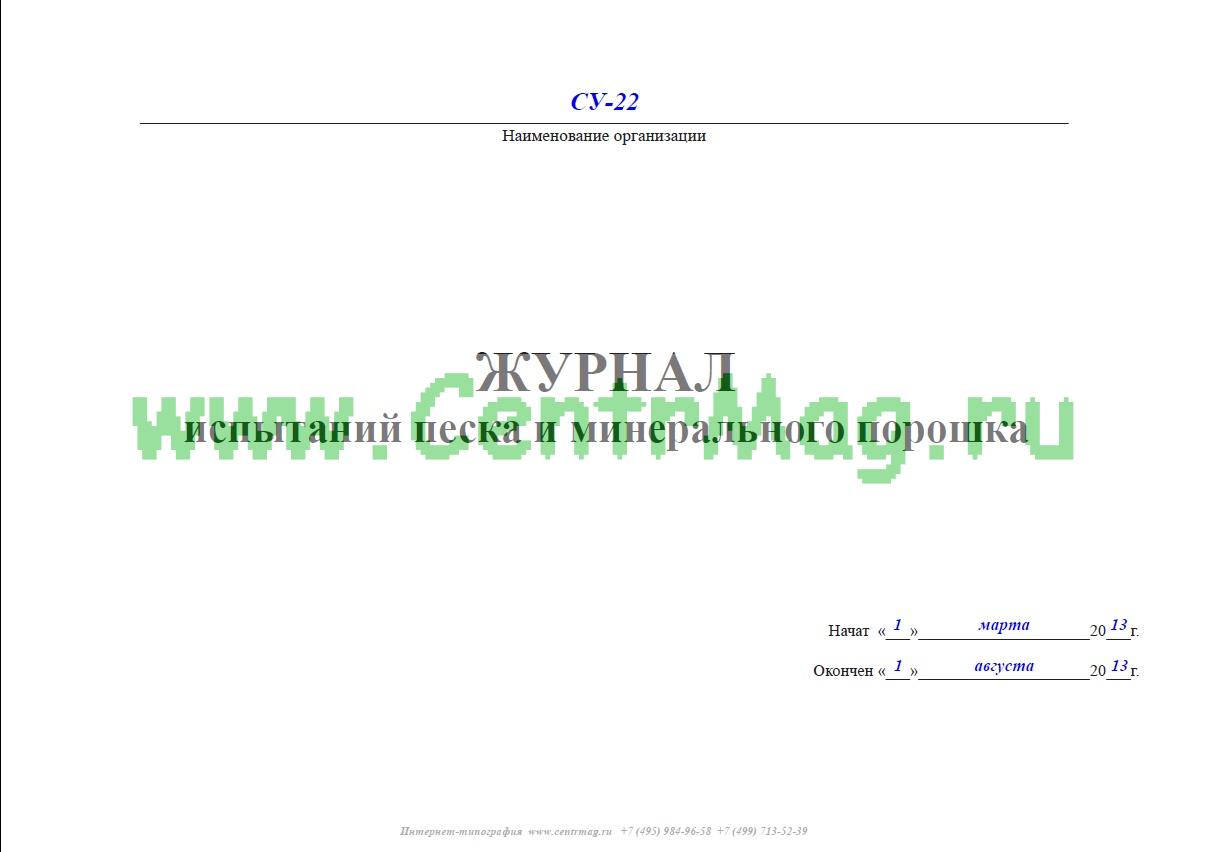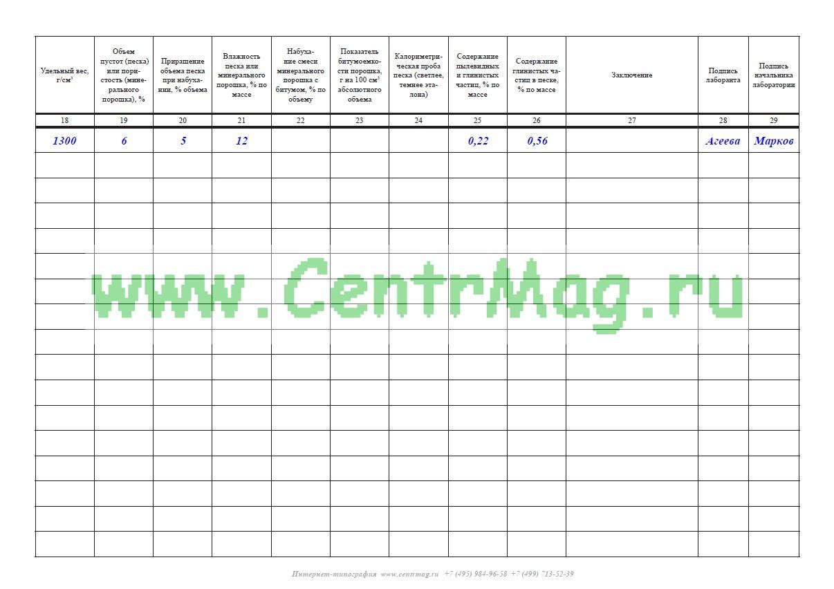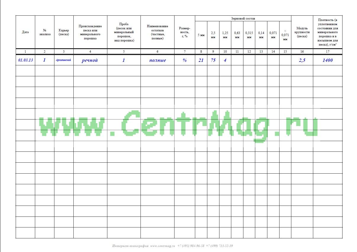 Журнал испытаний песка и минерального порошка соответствует Приложению 7 к Руководству по строительству дорожных асфальтобетонных покрытий.