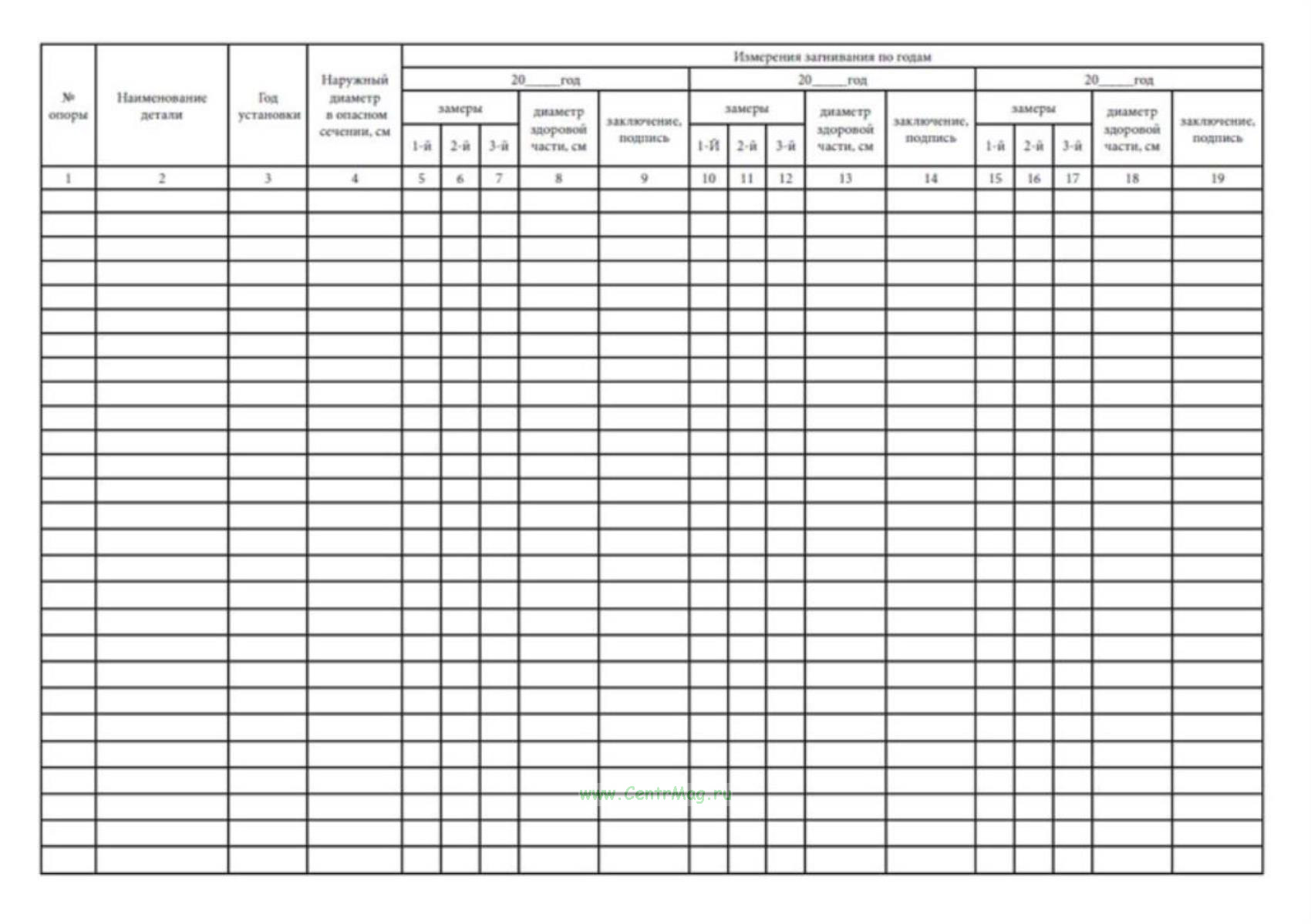 Графы журнала измерений загнивания древесины опор ВЛ (Форма N 13-Э):