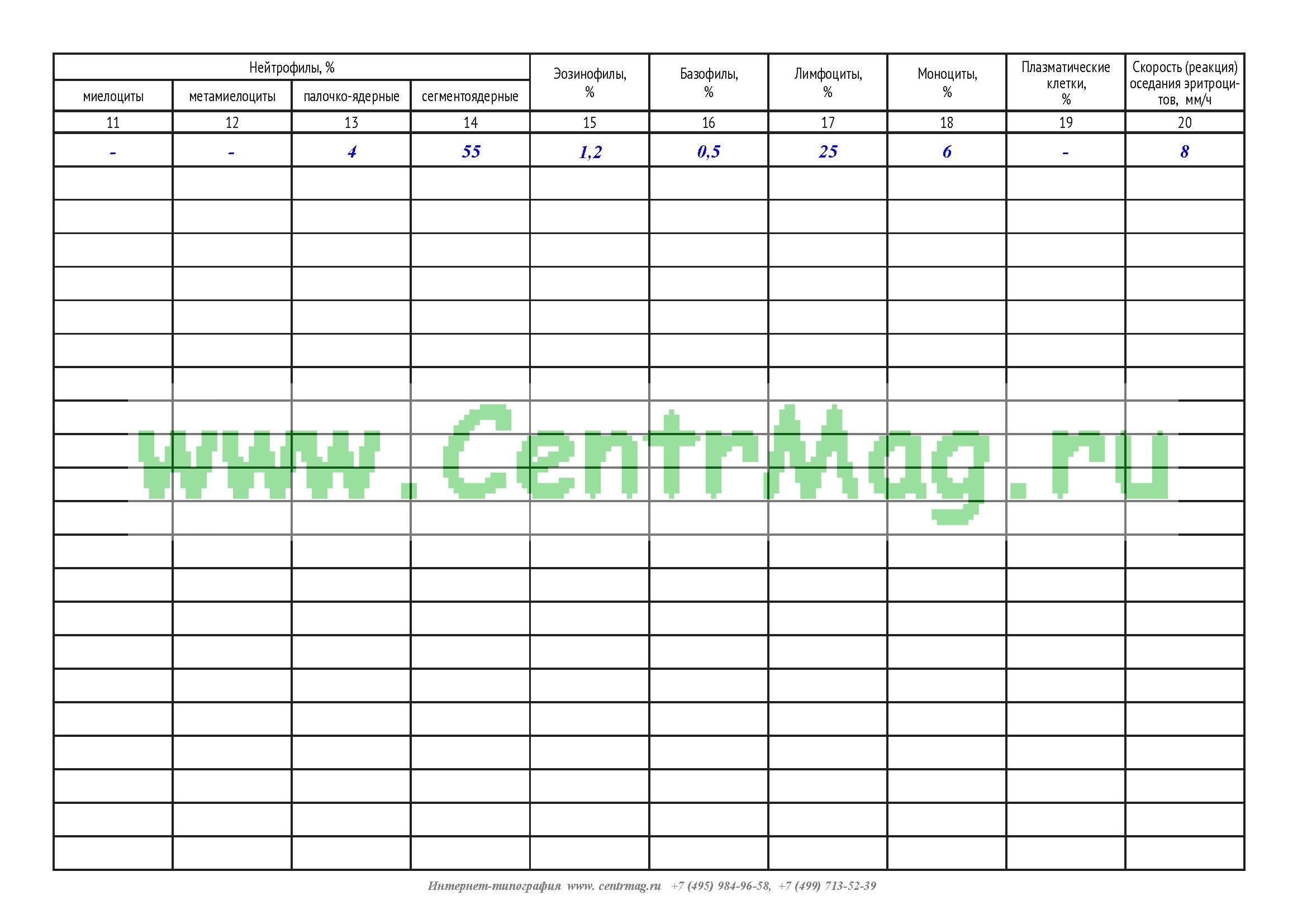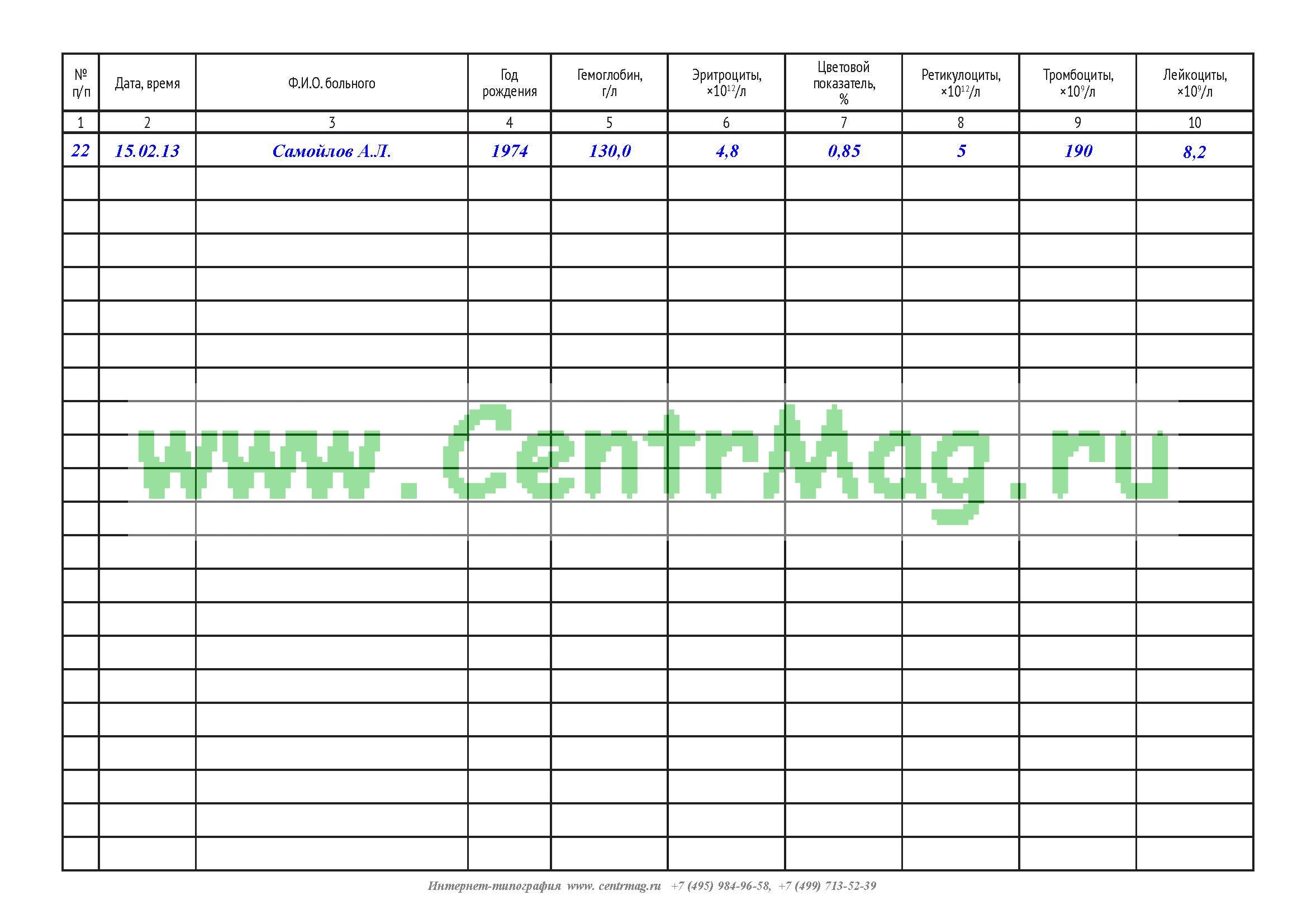 Графы журнала Клинический анализ крови: