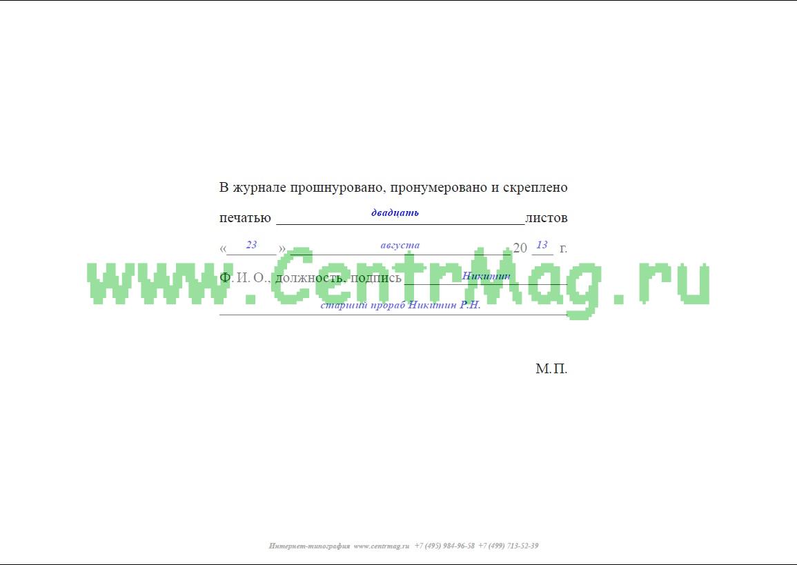 Журнал заполняется начальником смены и хранится у начальника участка;