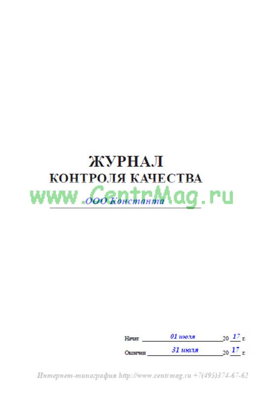 образец и пример заполнения журнала контроля качества