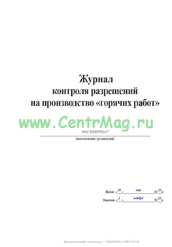 Журнал контроля разрешений на производство "горячих работ" имеет графы: