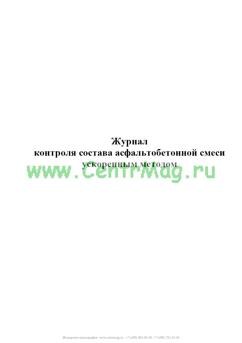 Форма журнала контроля состава асфальтобетонной смеси ускоренным методом соответствует Приложению 1 (Форма 12) к "Пособию по строительству асфальтобетонных покрытий и оснований автомобильных дорог и аэродромов (к СНиП 3.06.03-85 и СНиП 3.06.06-88)".
